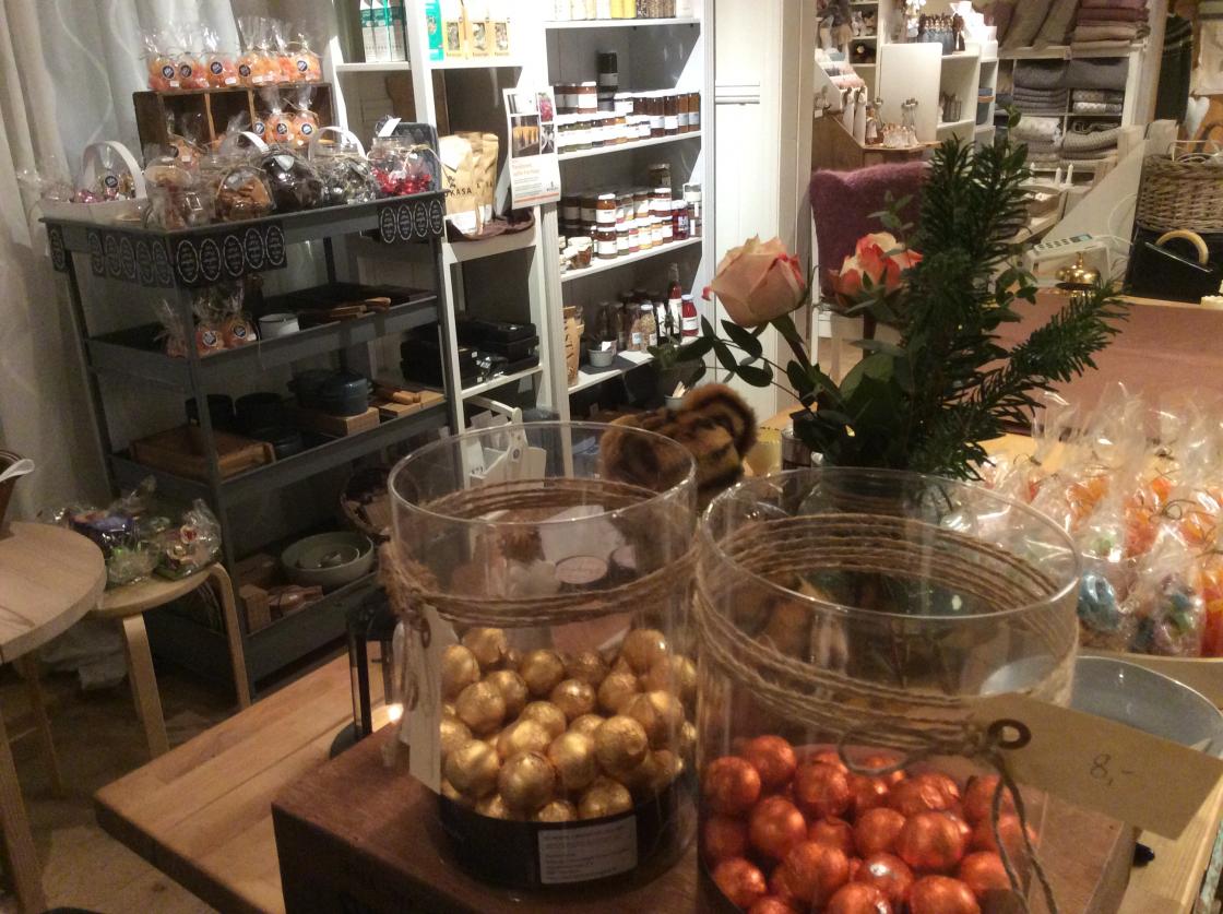 Wenche Bue, som står bak herligheten, begynte med denne hobbyen etter hun ble pensjonist. Det hadde vært mye mer jobb en forutsatt, som de fleste som starter en bedrift sier, men hun er veldig fornøyd nå etter ca 2 års drift. Det er folk innom hver dag som de har åpent: Torsdag, fredag og lørdag fra kl 1200-1600. Dessuten tar de imot lag og foreninger på dag- eller kveldstid i tillegg. Så de føler det er mer enn nok å stå i med. Wenche har også flere til å hjelpe seg/være med i drifta, så som Tone Heian (opprinnelig fra Moi i Rogaland) som er ei kreativ jente som kan få til mye på bestilling. Jeg må bare si: Stikk innom å sjekk alt som er mulig! Dessuten hadde hun god hjelp også av et par andre venninner. Men her var det litt av hvert å få kjøpt: Karameller og sukkertøy, te, syltetøy og honning, nydelige kosedyr av ulik rase, klær og servicer, pyntegjenstander av mange slag, treleker og folkevogner, pledd og puter og ulike bruksgjenstander, ja veldig vanskelig å få med alt. Men vel verdt et besøk - særlig til gaver og spesielle ting, men også fine linkjoler f.eks.