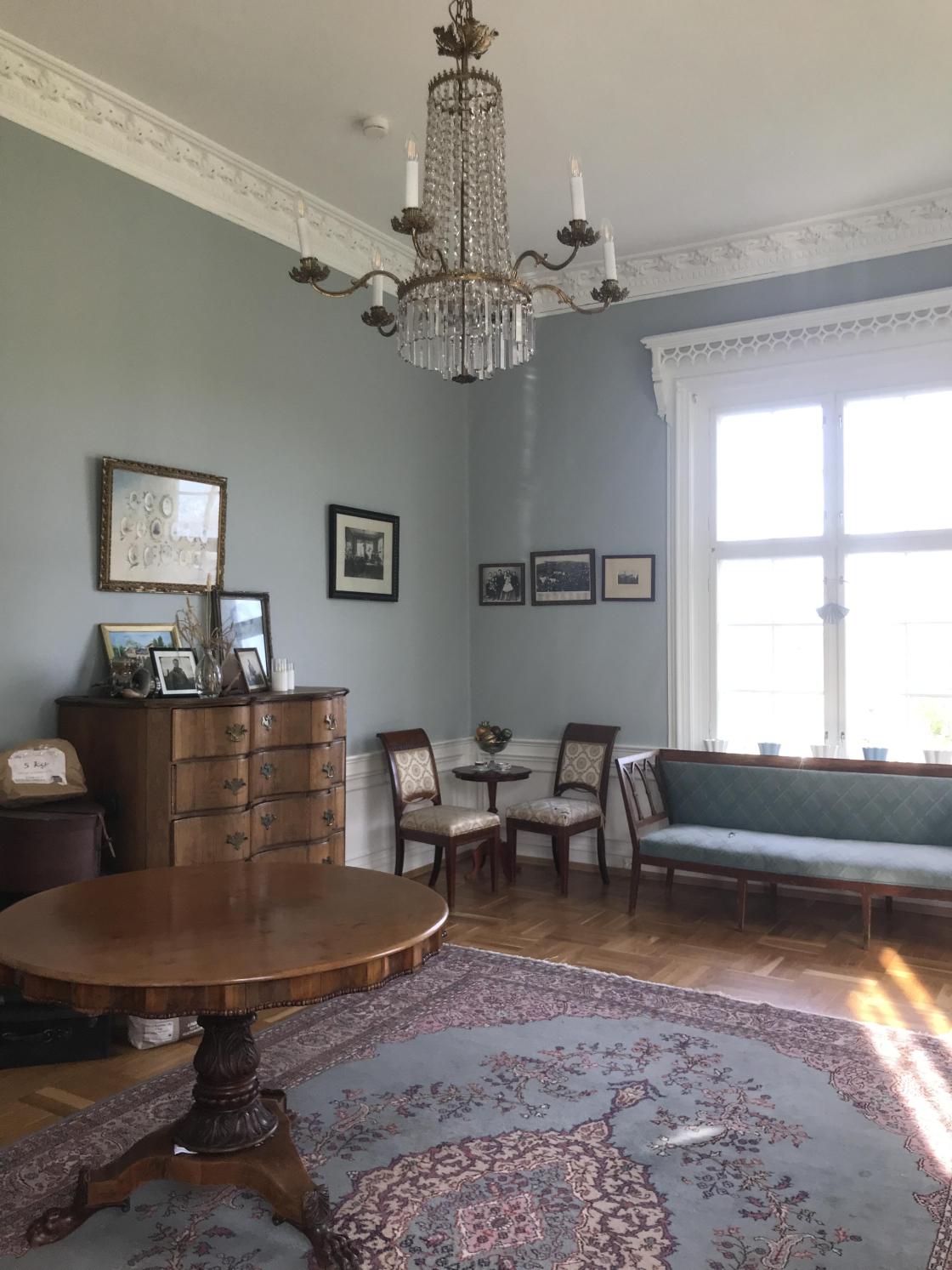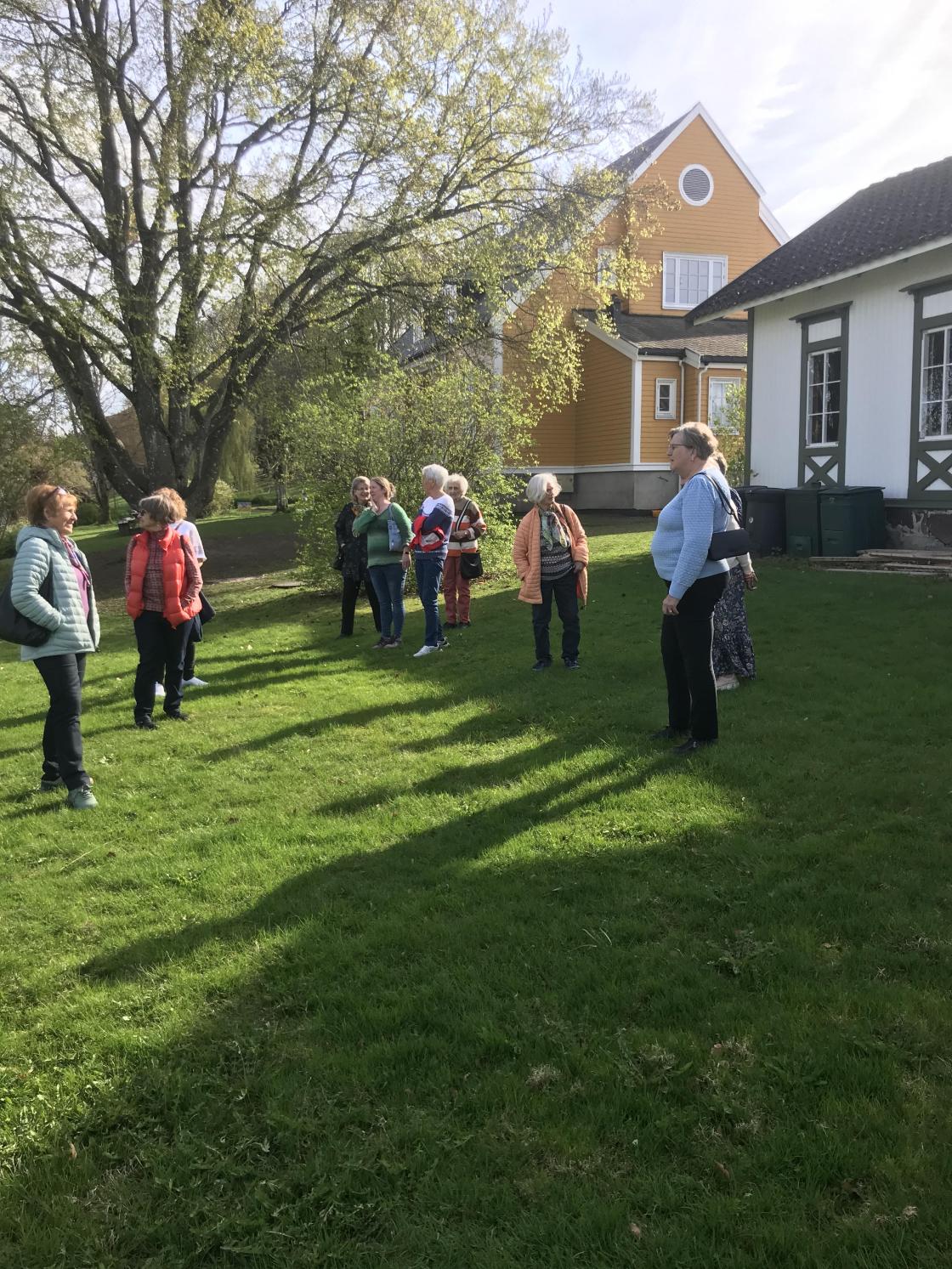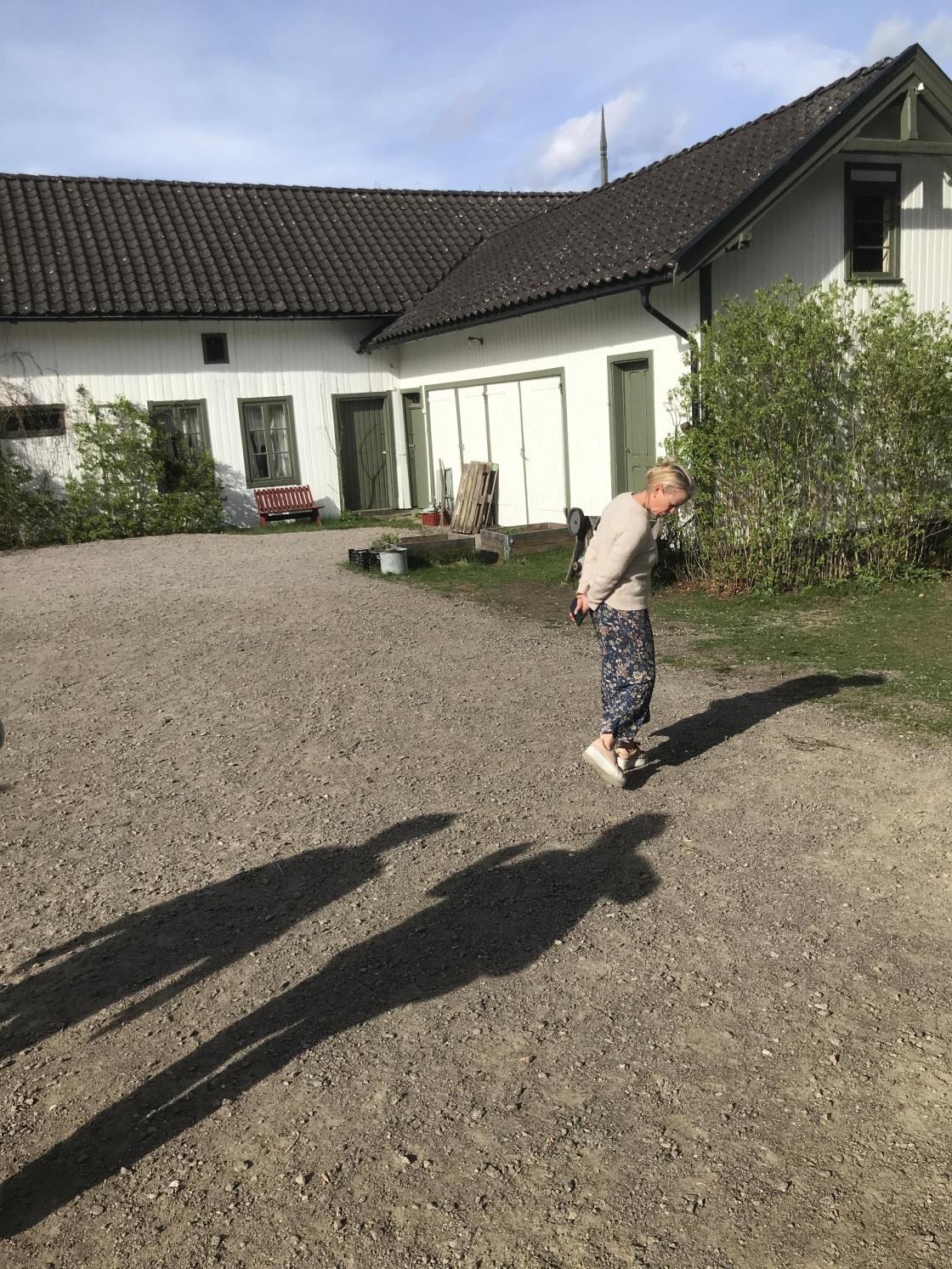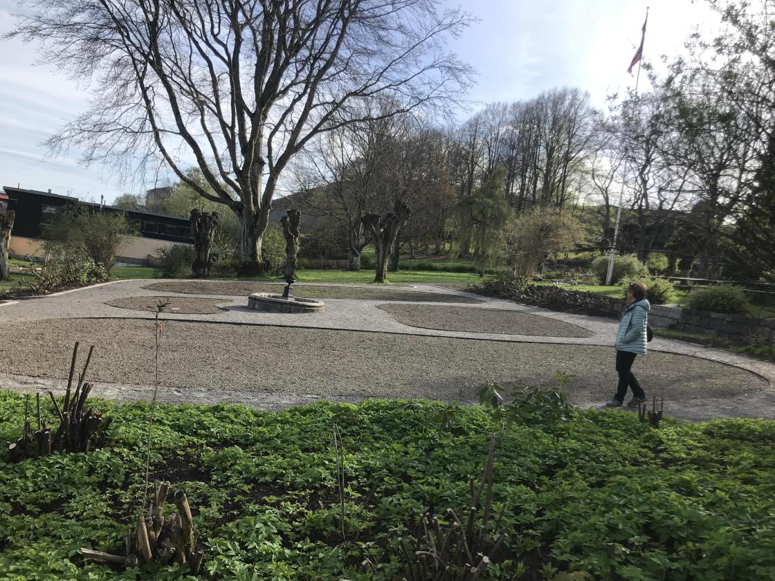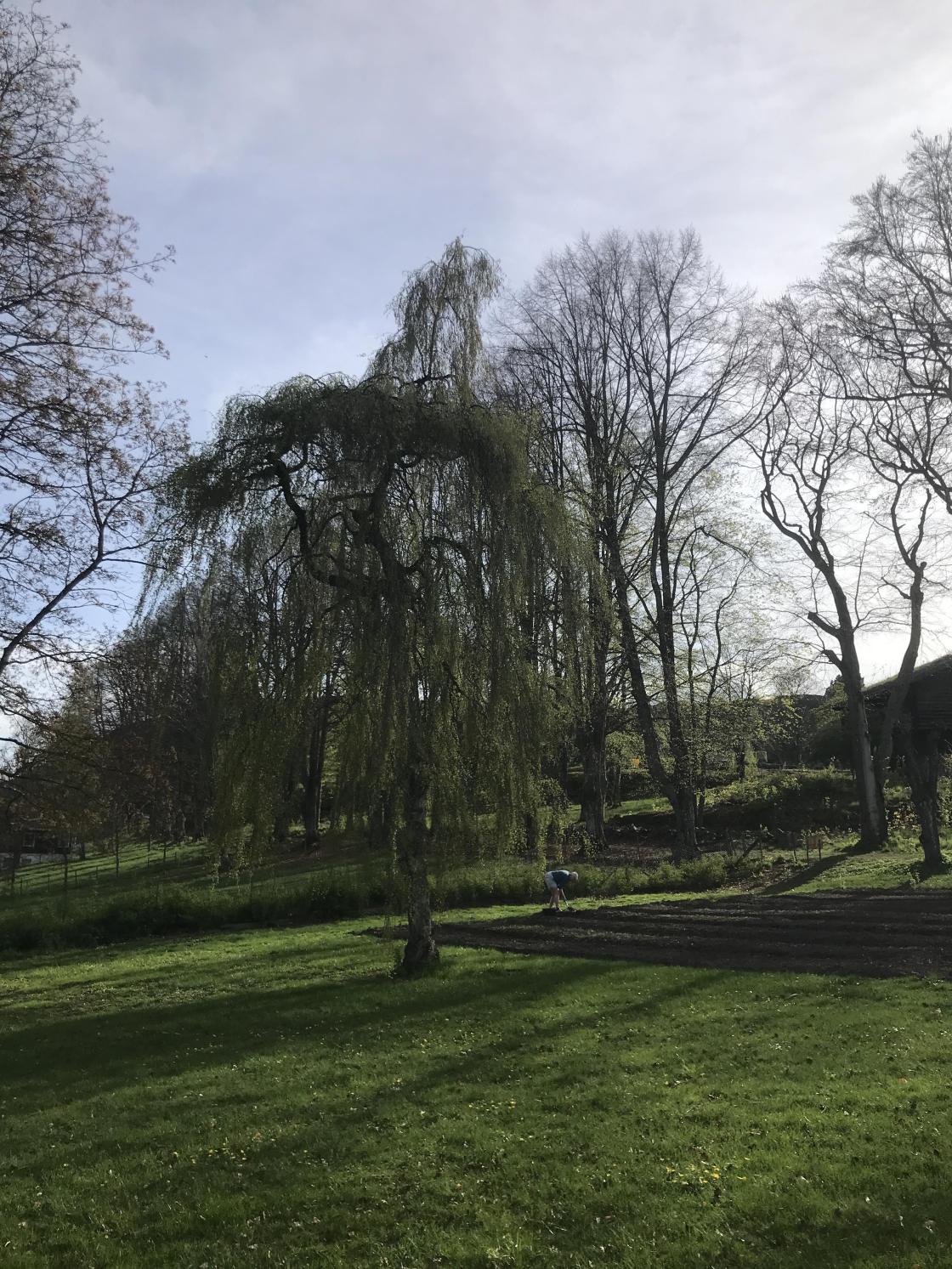 Vi kjørte til døra og ble møtt av Bente Bugge-Ellingsen. Hun tok oss med på en omvising i parken og det gamle herskapshuset. Parken er åpen for alle og Løkken byhage dyrker en del av den.