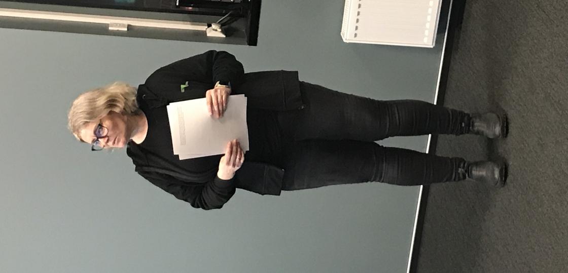 Vi ble ønsket velkommen av Veslemøy Grinde – forholdsvis nyansatt avdelingsleder ved Revetal bibliotek som er en avdeling av Tønsberg og Færder bibliotek. Vi fikk servert kaffe/te i rommet ”Blackbox” og kjøpte wienerbrød hos Wilmas kafe i 1. etg.
