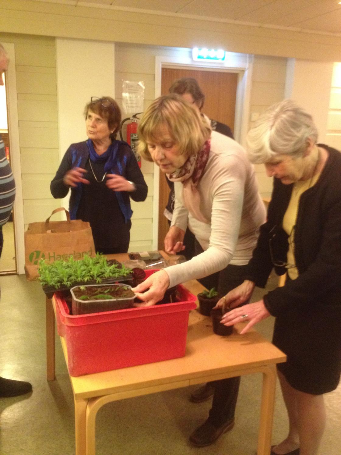 Så fortalte Skautvedt oss hvordan forskjellige planter kan formerer. Det enkleste er å stikke de ned i god jord, vanne godt og tre en plastpose over å la de St tre uker. Da skal røtter og plante fått en fin start! Alle fikk anledning til å ta med noen stiklinger i potte hjem. Selvplantet!
