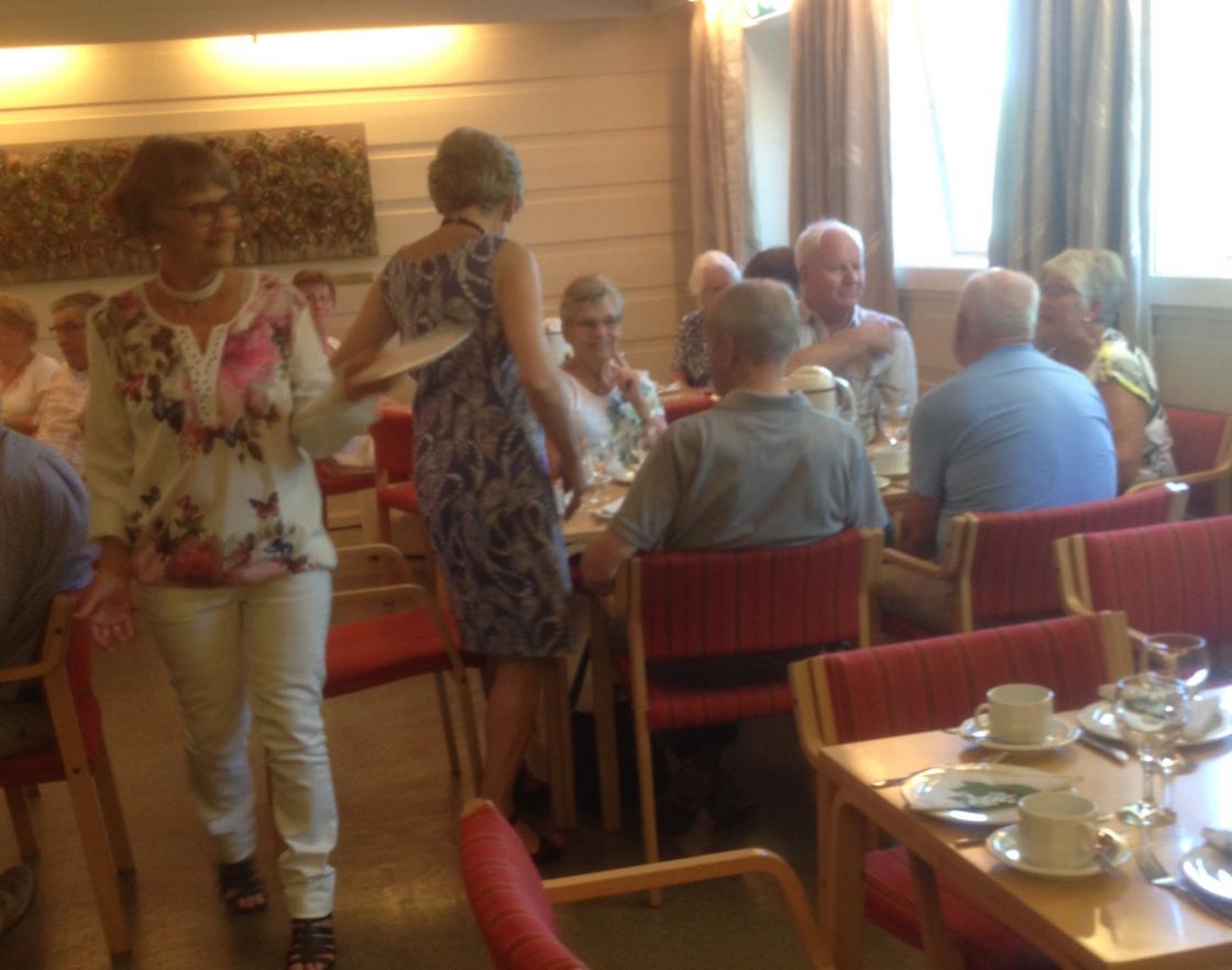 Våre tre flinke damer underholdt og serverte oss. Spekemat og is pluss waleskringle til dessert. Vi ble Mette alle!