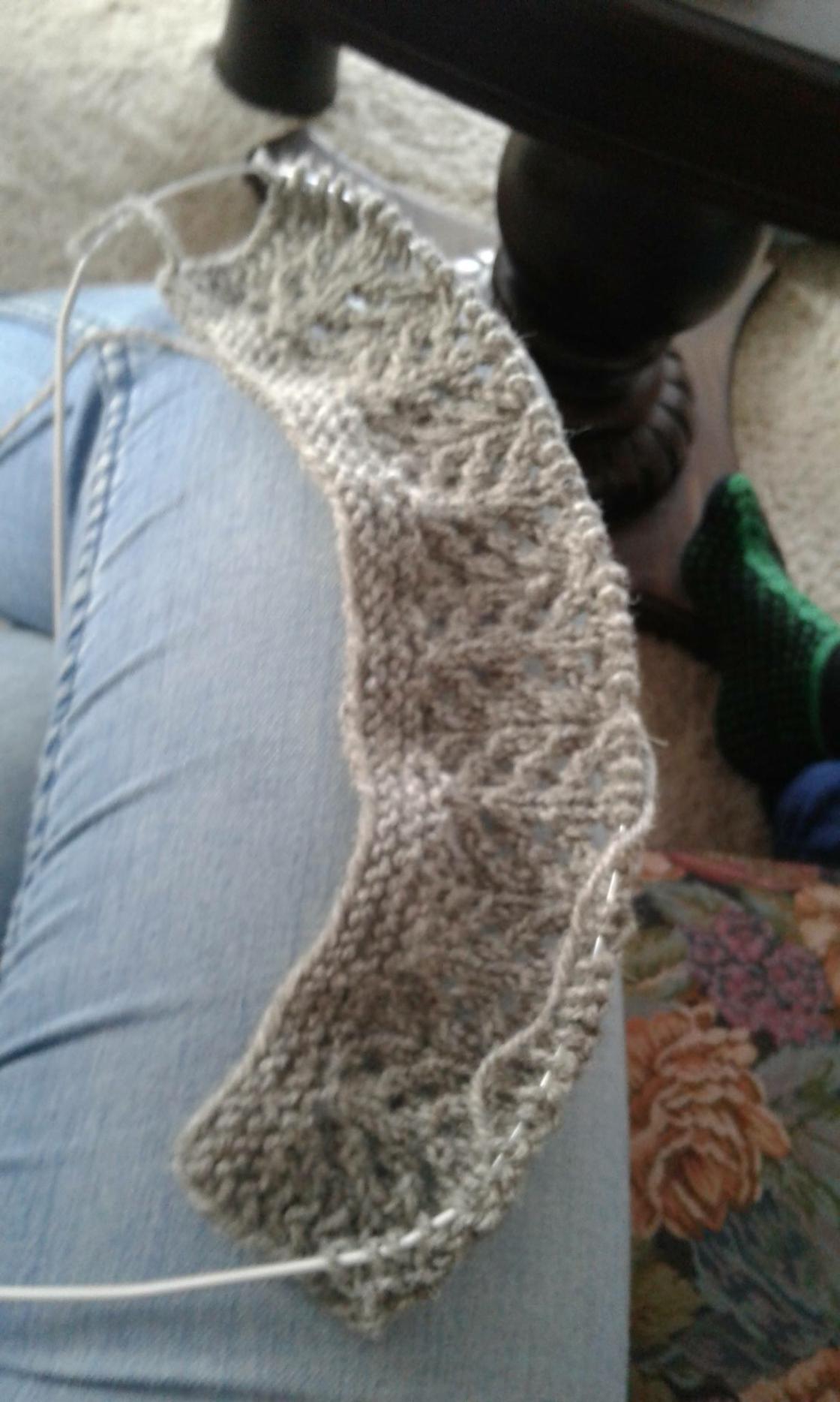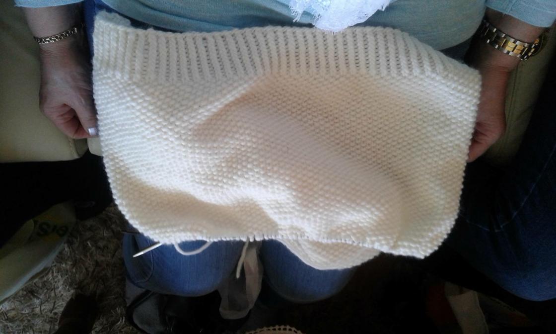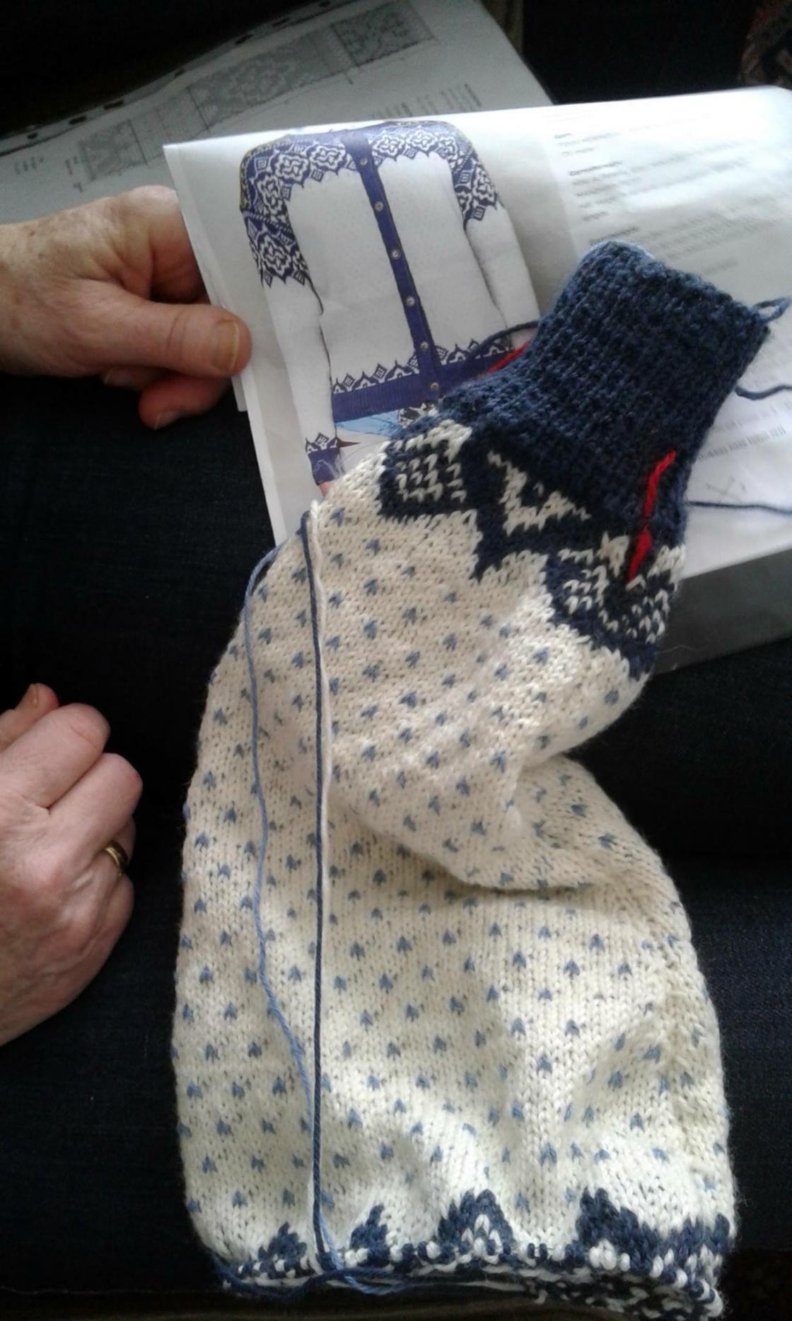 En fin genser under arbeid