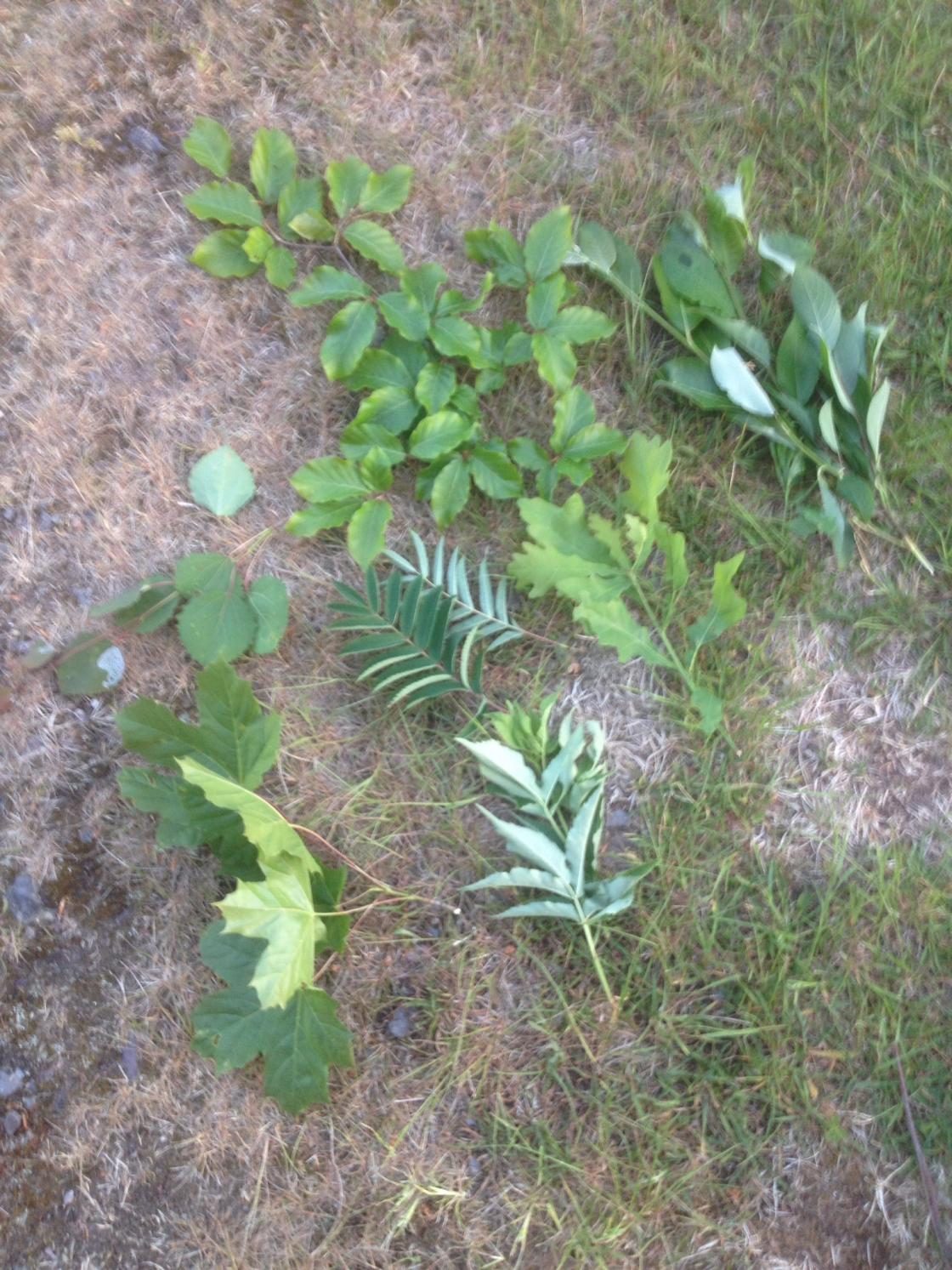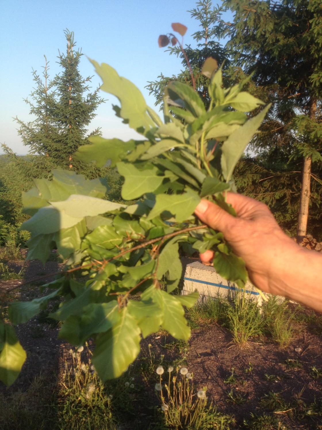 Vi gikk en tur i skogen til Jorun og Odd Ouff der vi fant mange ulike løvtrær i tillegg til gran, furu og barlind. Vi fant også busker som ikke ønskes i skogen, men som sprer seg raskt - nesten som brunsnegler i hagen........