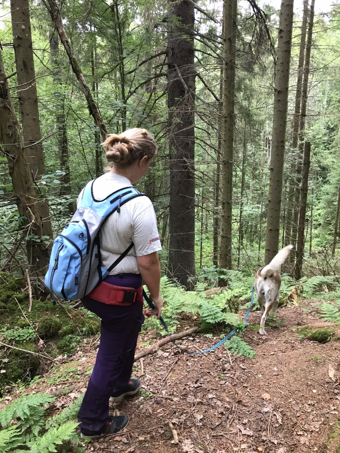 Ivrige Tove, Jorunn og «Odin» møtte opp å så på den svære grana. Stor til å være gran, men ikke så kjempestor ellers....