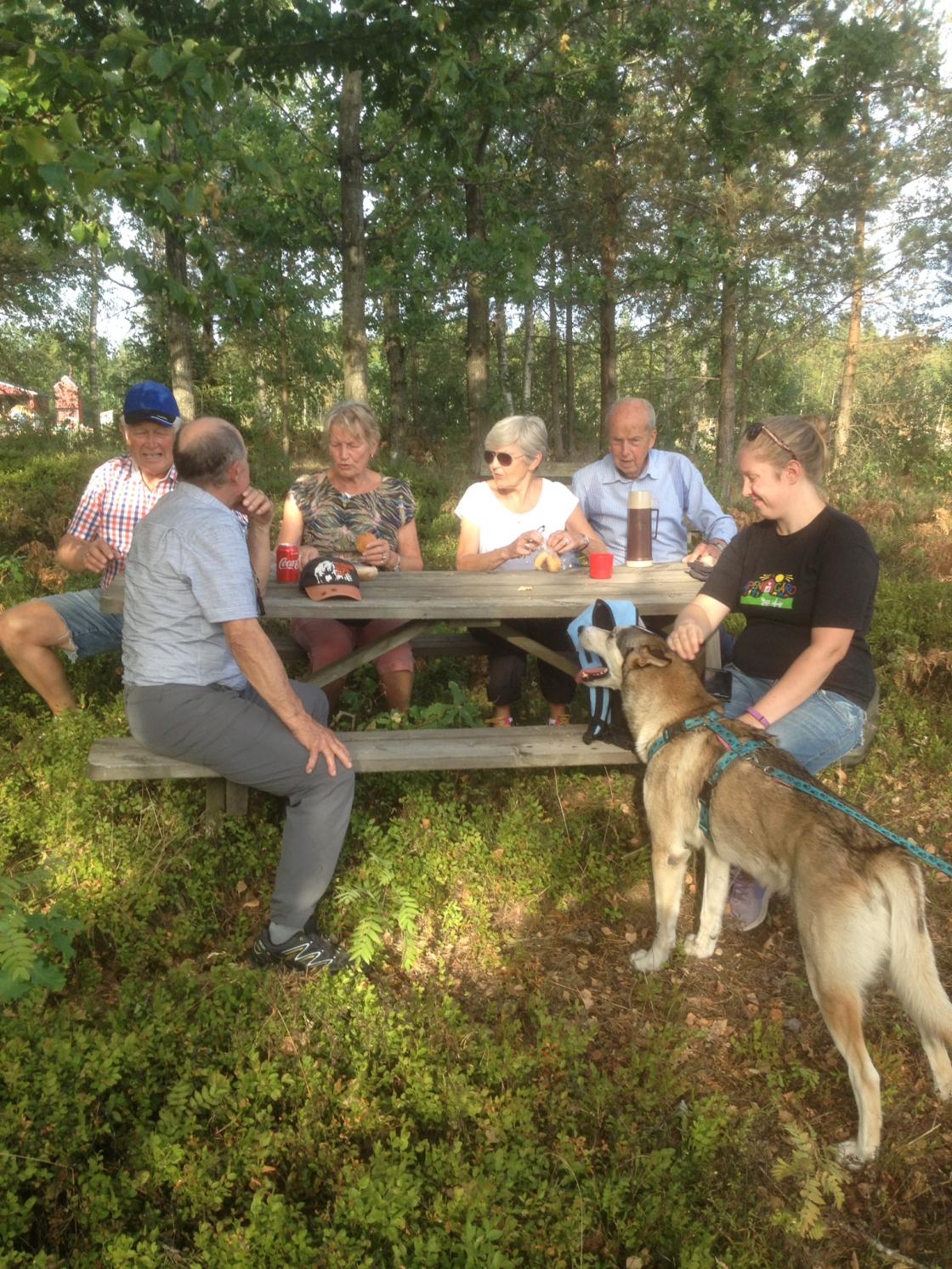 Oppmøte på Dalheim eller direktekjøre. Ikke såå greit pga stengt vei/omkjøring. Vi parkerte ved barnehagen og gikk 2,2 km hver vei. Heldigvis litt i skygge da det var over 30 grader denne ettermiddagen. Fin grusvei å gå på. Greit med trekkhund opp ei kneik og skygge på rasteplassen.