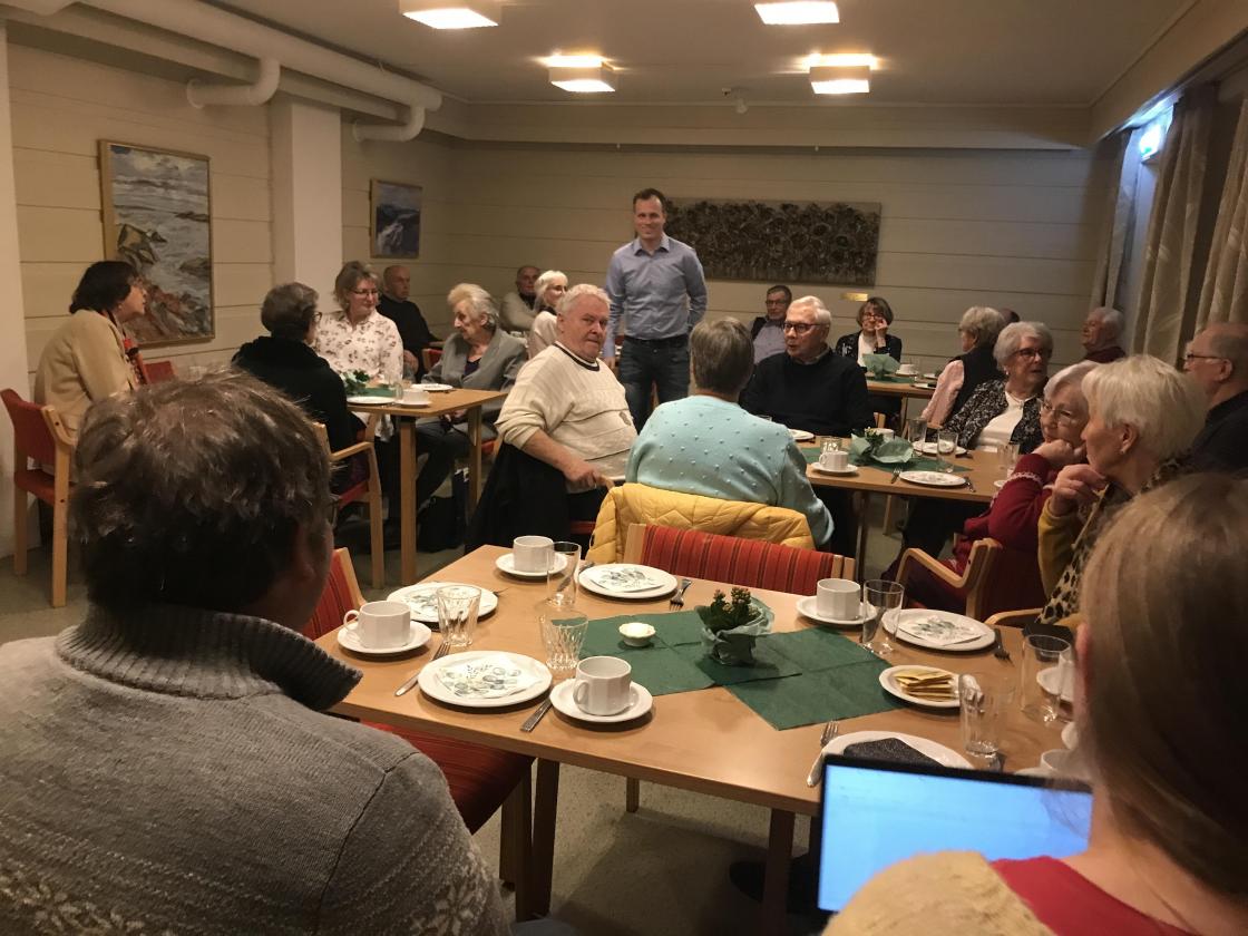 Vi var 25 stk i kjellerstua på Dalheim denne kvelden for å høre journalist Olav Døvik fra Undrumsdal og Dagsrevyen fortelle om sitt virke.