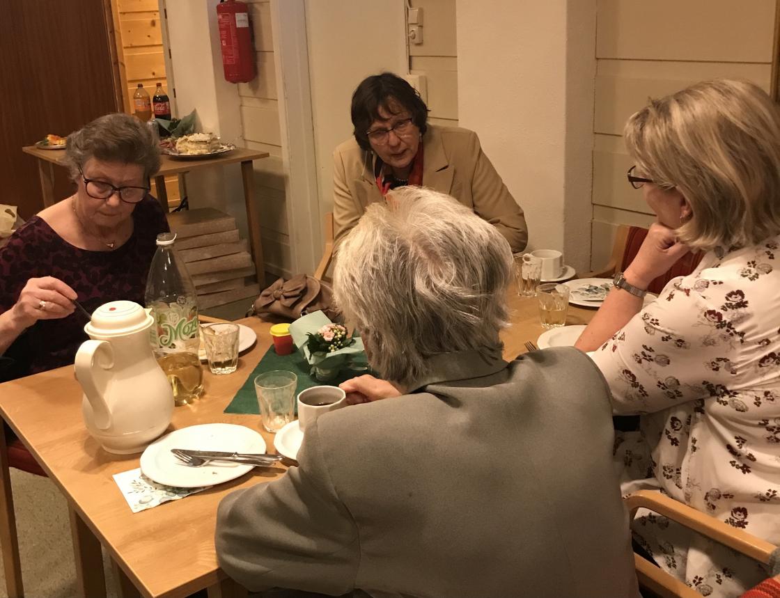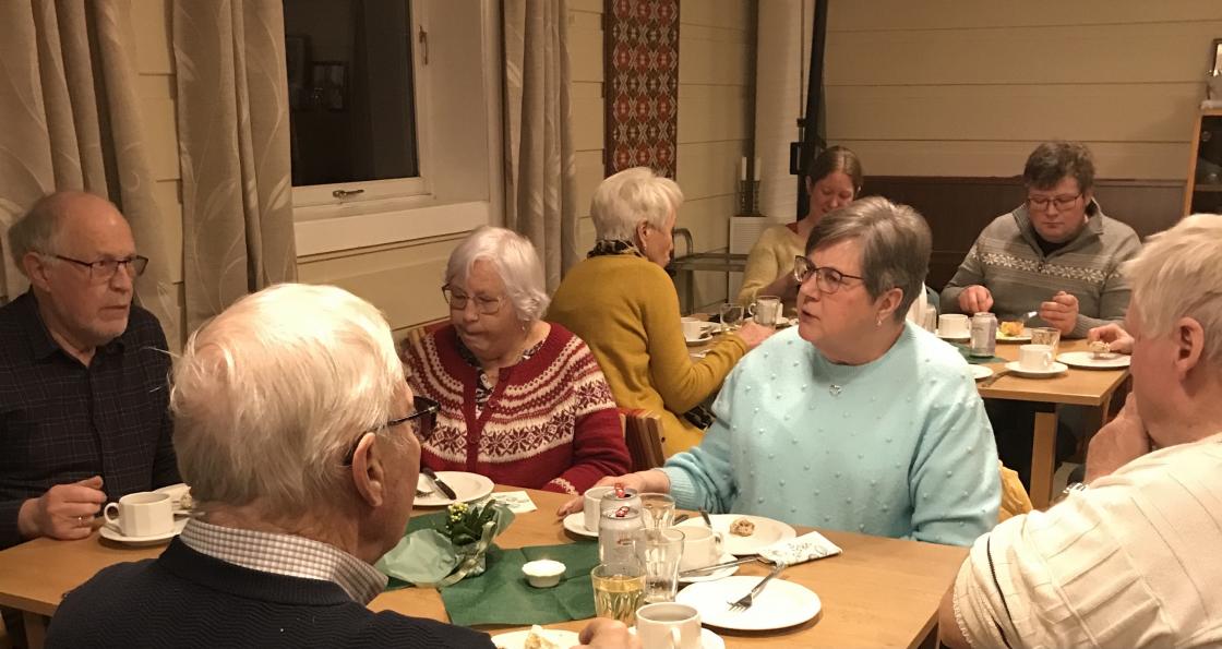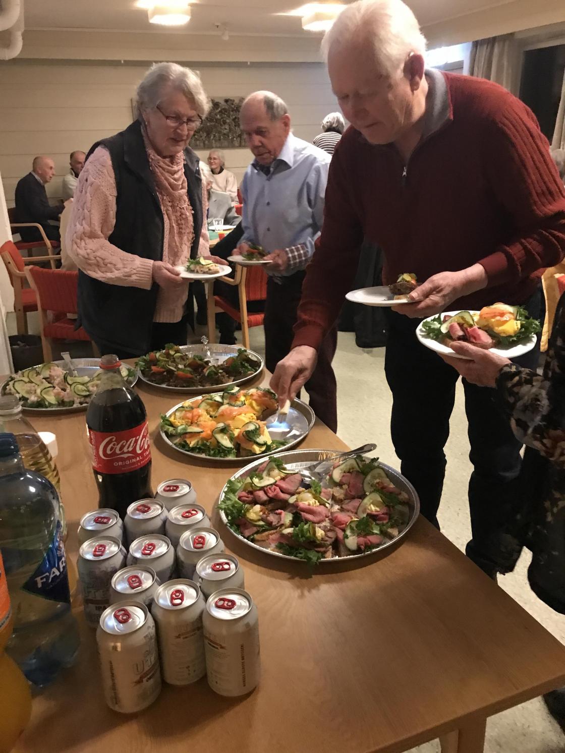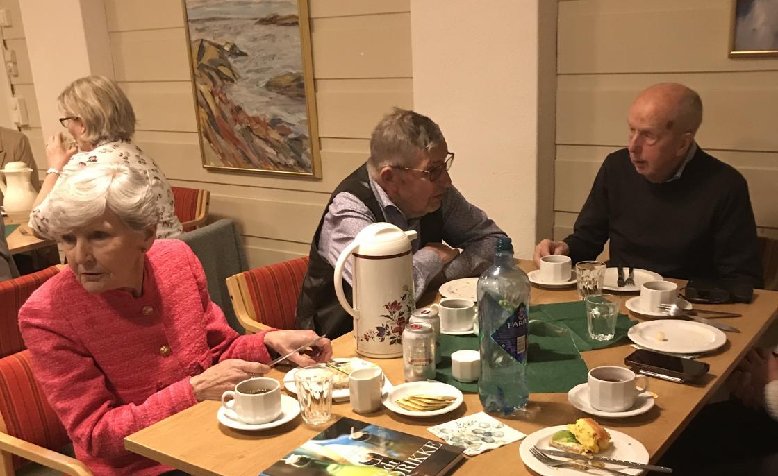Det ble servert snitter og bløtkake/nøttekaker til bursdagsgjestene og Berit Sæthre leste en hilsen til laget i anledning 85 års jubileumet. Vertinnene Ellen Gjerpe Hansen og Torunn Døvik hadde dekket bord og sto for serveringen. Mange gaver/gevinster fra de fremmøtte ble loddet ut.