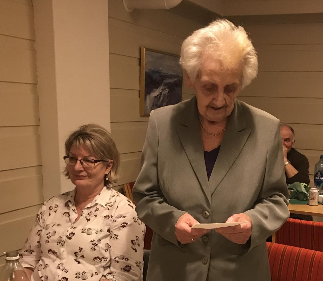Jorunn Kjærnes ønsket velkommen og vi sang bursdagssangen for laget vårt som blir 85 år 5. mars dette året - og for Ingegjerd Backe som ble 86 år i går.