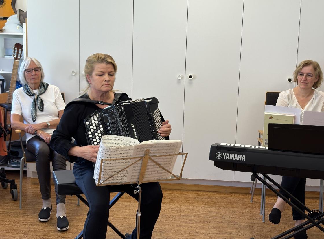 Vigdis hadde plukka ut songar som passa til årstida, og Linda og Carolin leidde alt på ein flott måte. Linda er flink til å fortelje litt mellom songane.
