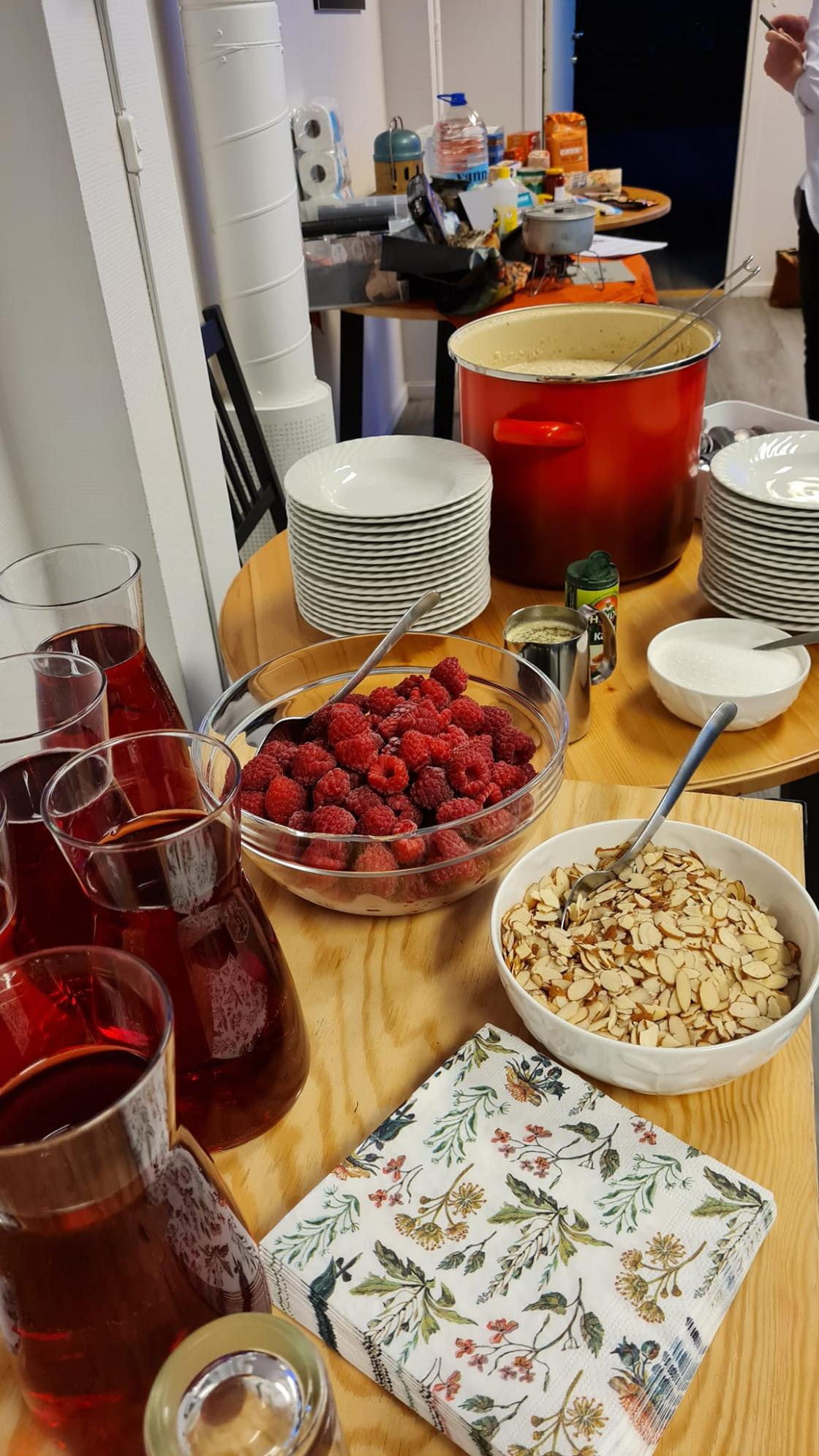 Med utgangspunkt i hva nasjonale anbefalinger sier at våre privat beredskapslager bør bestå av, var det lagd ei utstilling for kvelden. Bevertningen var inspirert av kveldens tema og besto av havregrøt med bringebær og nøtter, og havremakroner etter gammel oppskrift til kaffen. Anne fortalte kort om hva som hadde skjedd i laget siden forrige møte, og om planene videre fram mot sommeren.