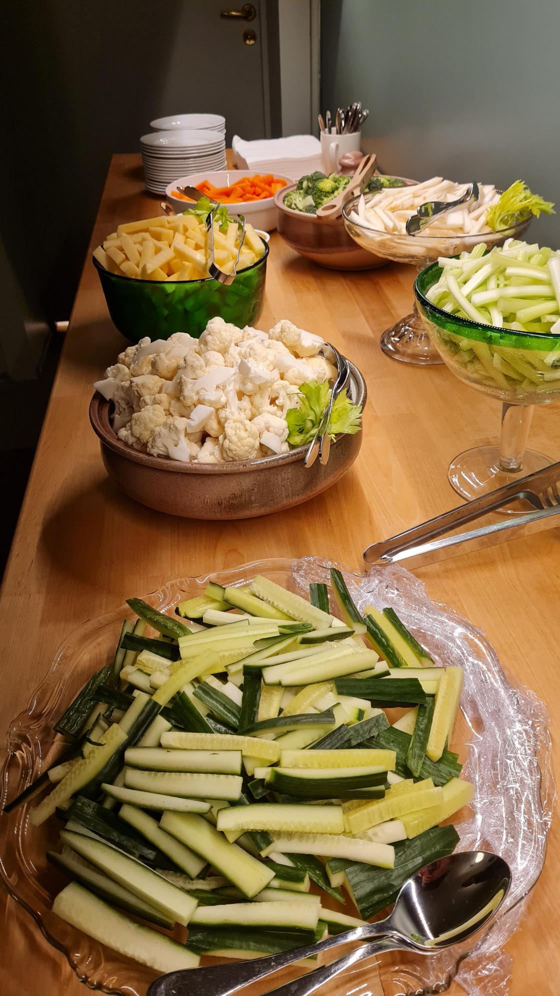 Vi serverte grønnsaker med dip, smootie og kaffe. Lagssaker og informasjon om Norges Bygdekvinnelag sitt nye prosjekt; Nøysom.