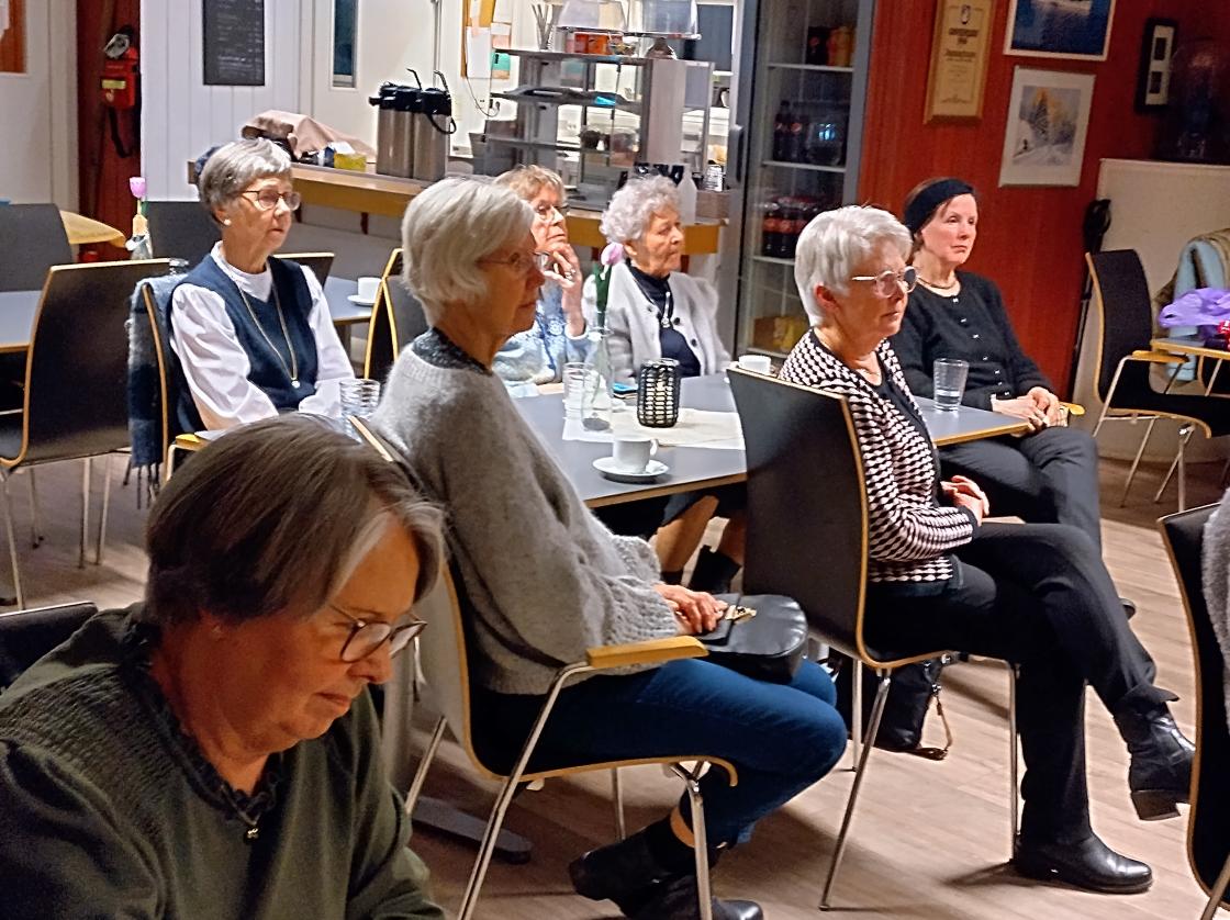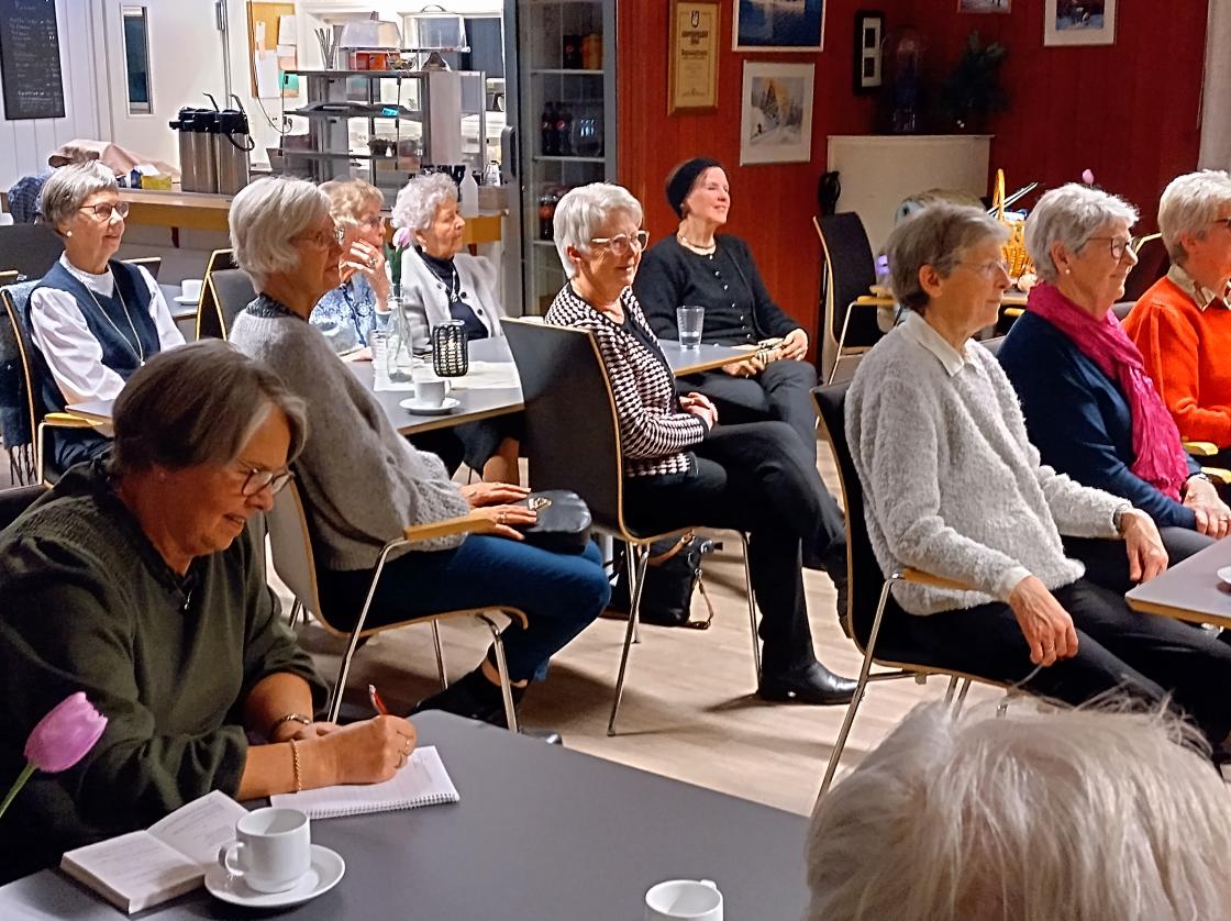 Vi møttes på Øverbykafeen og leder Gøran Bertoia ønsket velkommen. Møtet ble innledet med sang « Sov du lille spire».