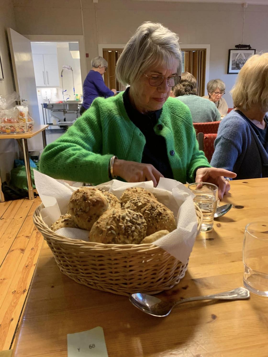 Vi lærte å lage suppe på svineknoke, bakte eltefri rundstykker, flatbrød og mørelefse. Litt lærdom kom med ved viktigheten med kraftkoking. Det tilfører kroppen mineraler, smart fett, aminosyrer, glukoproteiner og andre byggeklosser som stimulerer fordøyelsen. Det gir deg mer krefter og energi. Kraften bidrar med byggeklosser til hud, muskler, sener, brusk og bindevev. En hyggelig og lærerik kveld. Å så fikk vi smake på laget produkt ![]()