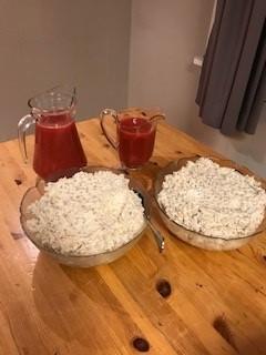 *Byggrynskrem m/rød saus
