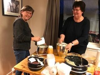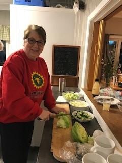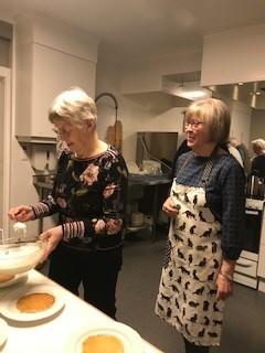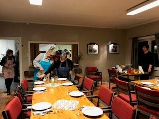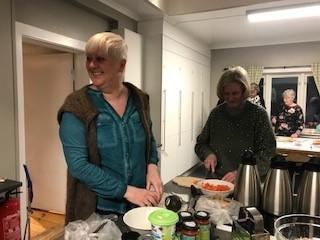 20 kvinner møtte for å lære mer og bli kjent med byggets kvaliteter. På en kveldstund ble det iherdig jobbet for å lage en treretters middag med bl.a.bygg som ingrediens.