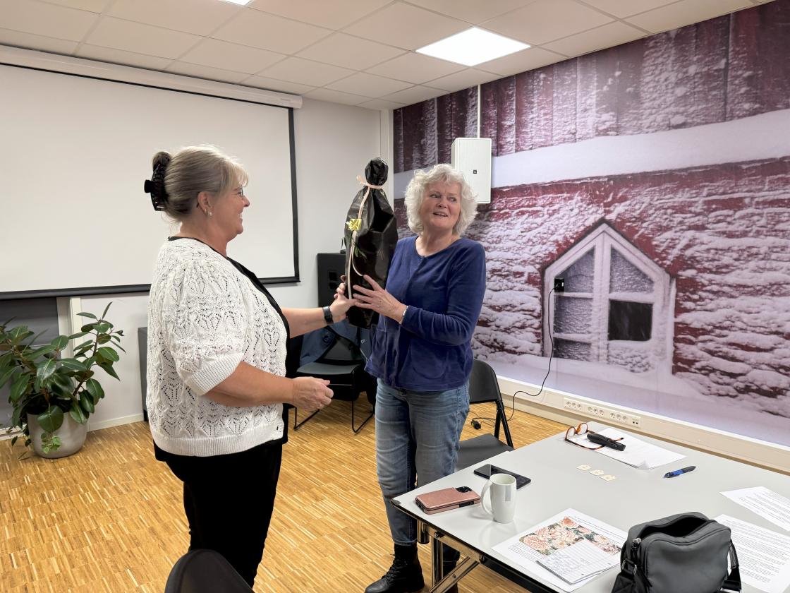 Goggi Sæter holdt et engasjerende foredrag fra boken hun har skrevet om motstandskvinnen Ingeborg Holm «Torturert og tatt som gissel. Gåten Ingeborg Holm» som var fra Bindal på Helgelandskysten. Hun hadde et lydhørt publikum i Låven på Flerbrukshuset i Hof kvelden 25. februar-25.