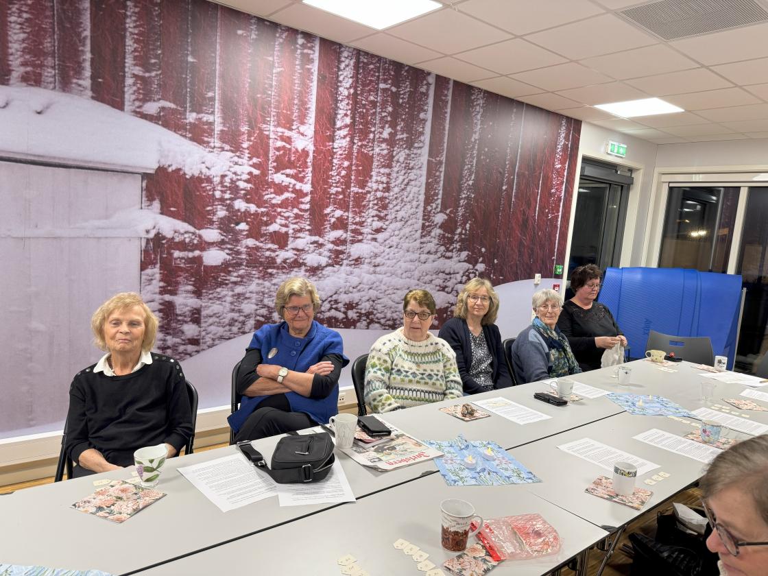 Underveis var det kaffepause og prat og loddsalg til slutt.