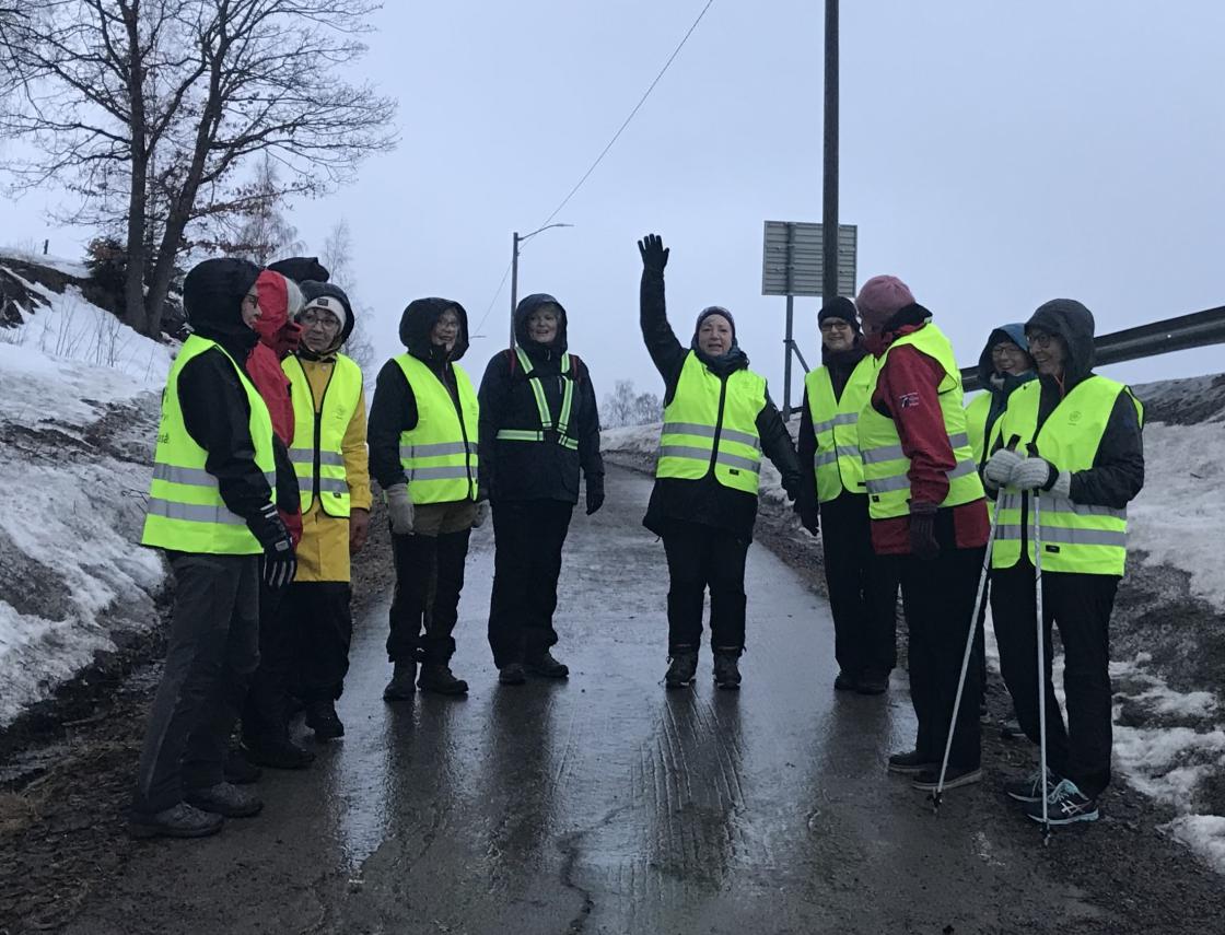 Øsende regnvær stoppet ikke 12 som møtte til tur - "tre kilomet'ern" ble gjennomført med fart, prat, smil og latter. Neste tur etter påske.