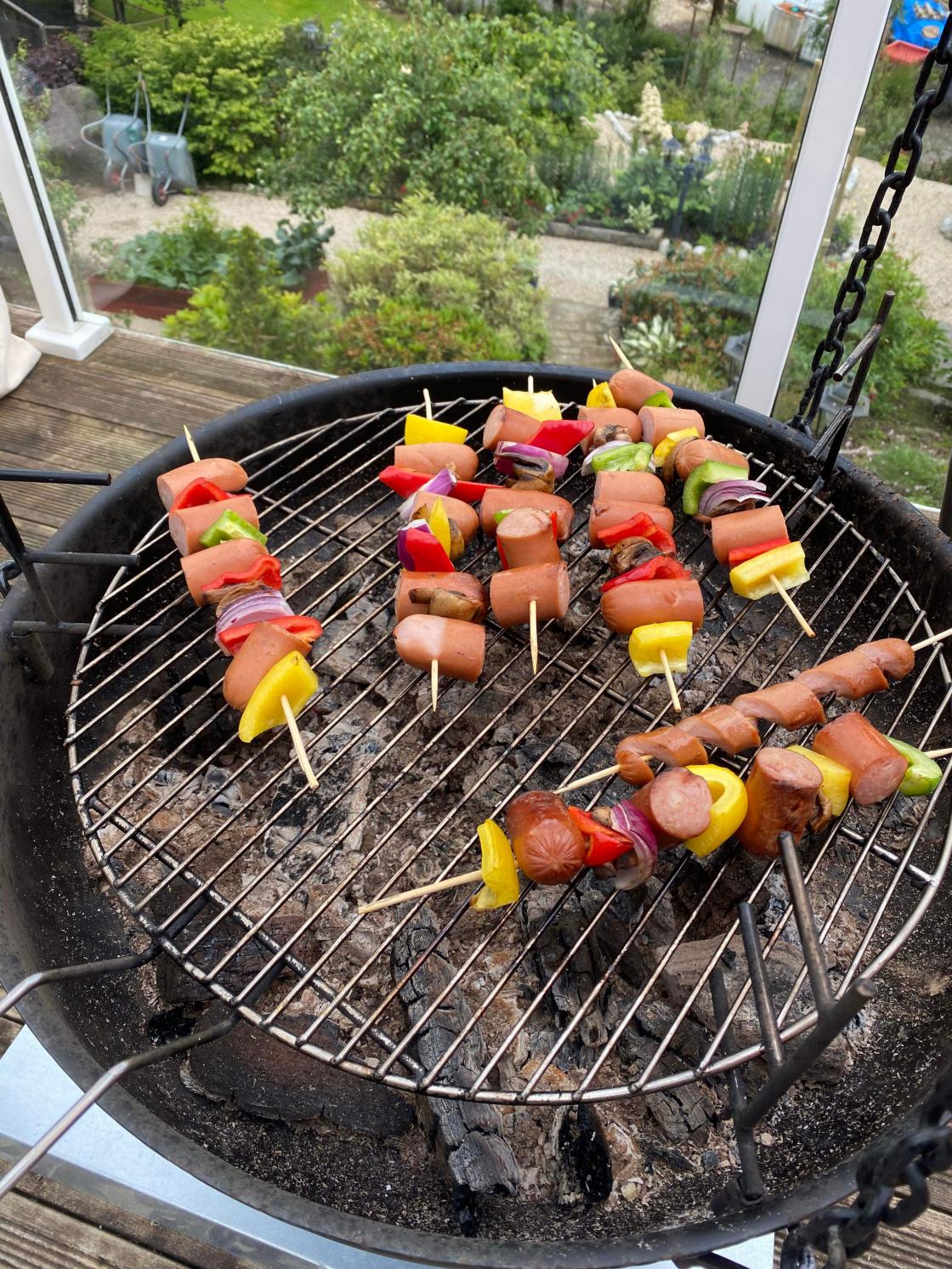 Det blei servert en velkomst drink, grillspyd med masse deilig tilbehør, hyllebærblomstsaft og Roar sine sveler til dessert.