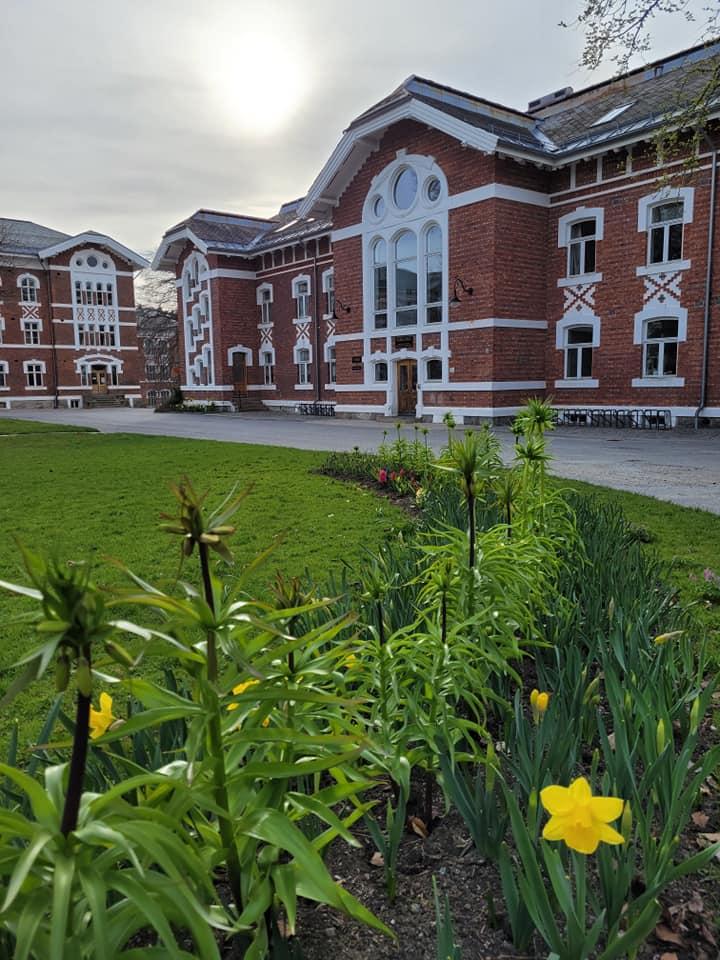 Veldig spennende å få omvisning inne i den nye vetrinærbygningen. For et fantastisk bygg som faktisk er åpent for publikum på dagtid . Noe blomster tittet opp av bedene, men det blir flere turer hit utover sommeren.