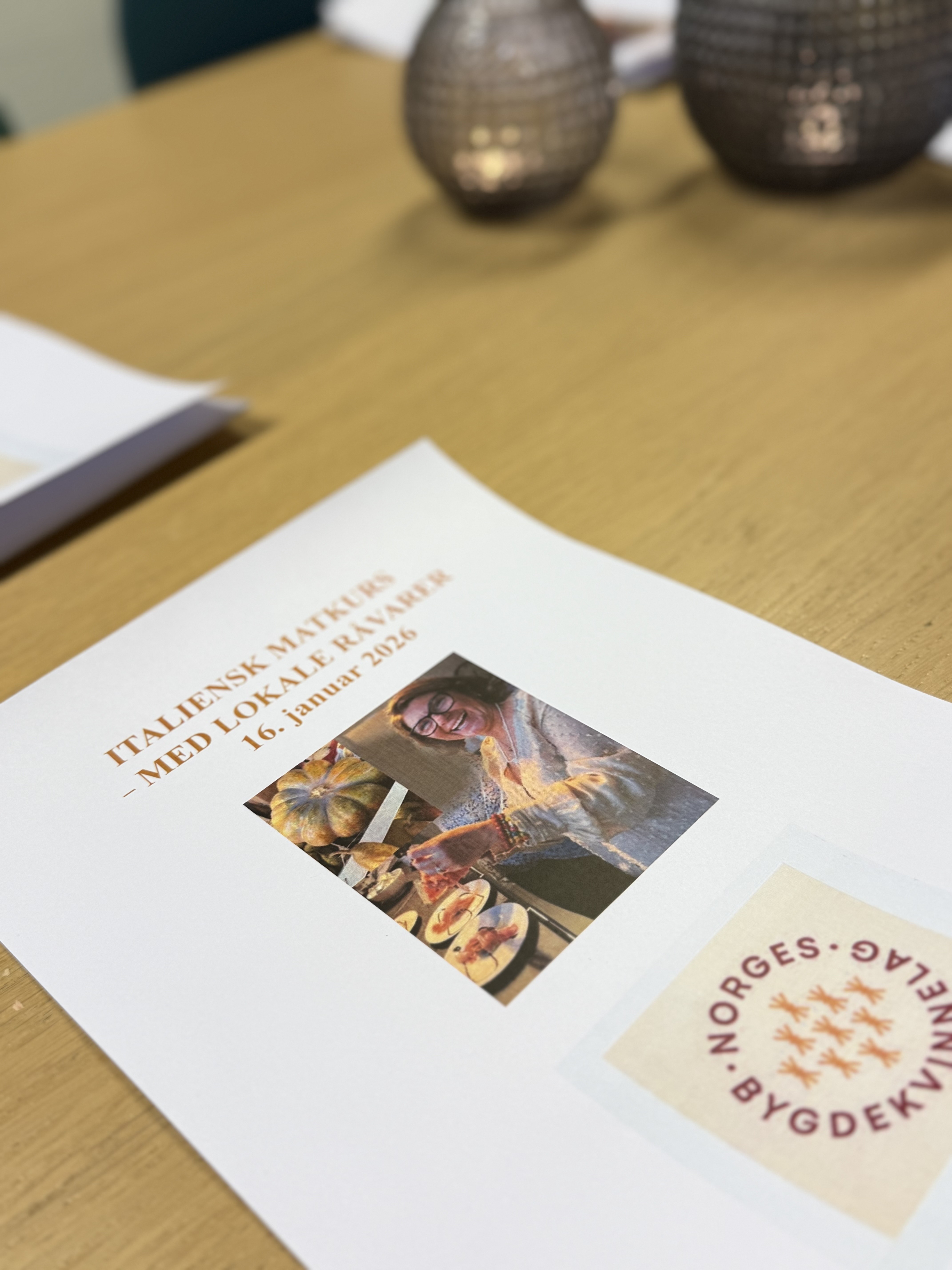 Vi har mange gode oppskrifter og tradisjoner i vårt lokalsamfunn, men det har også stor verdig med ny læring og innspill fra både andre samfunn og andre breddegrader. Vi inviterte til samlinger der vår kursholder er kunnskapsrik på hvordan lage mat på gammeldags, sør-Italiensk måte. Hun fortalte om hvordan de samlet seg ved tomatinnhøsting, og kokte tomater i en stor tønne i garasjen. Alle kom med rene glassflasker, og flasker med innhold ble kokt og deretter avkjølt i vannet. Vi fikk se hvilke maskiner som benyttes, hvordan flaskene forsegles og hvordan det oppbevares, via pc og projektor til Italiensk kokk. Den italienske stemningen kan videreføres til Norge, der vi sammen kan få til og forme gode måltider, og lage vår egen families spesielle resept, kanskje din egen familiehemmelighet...