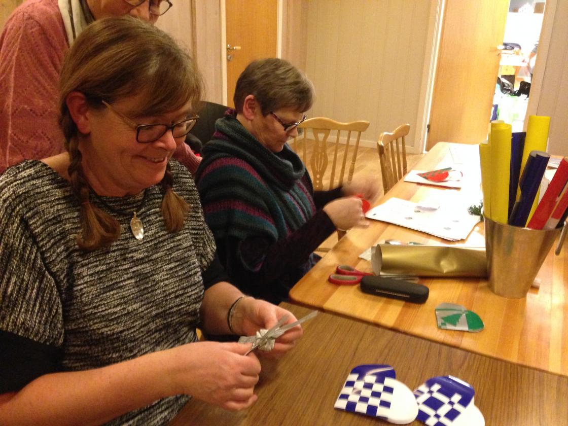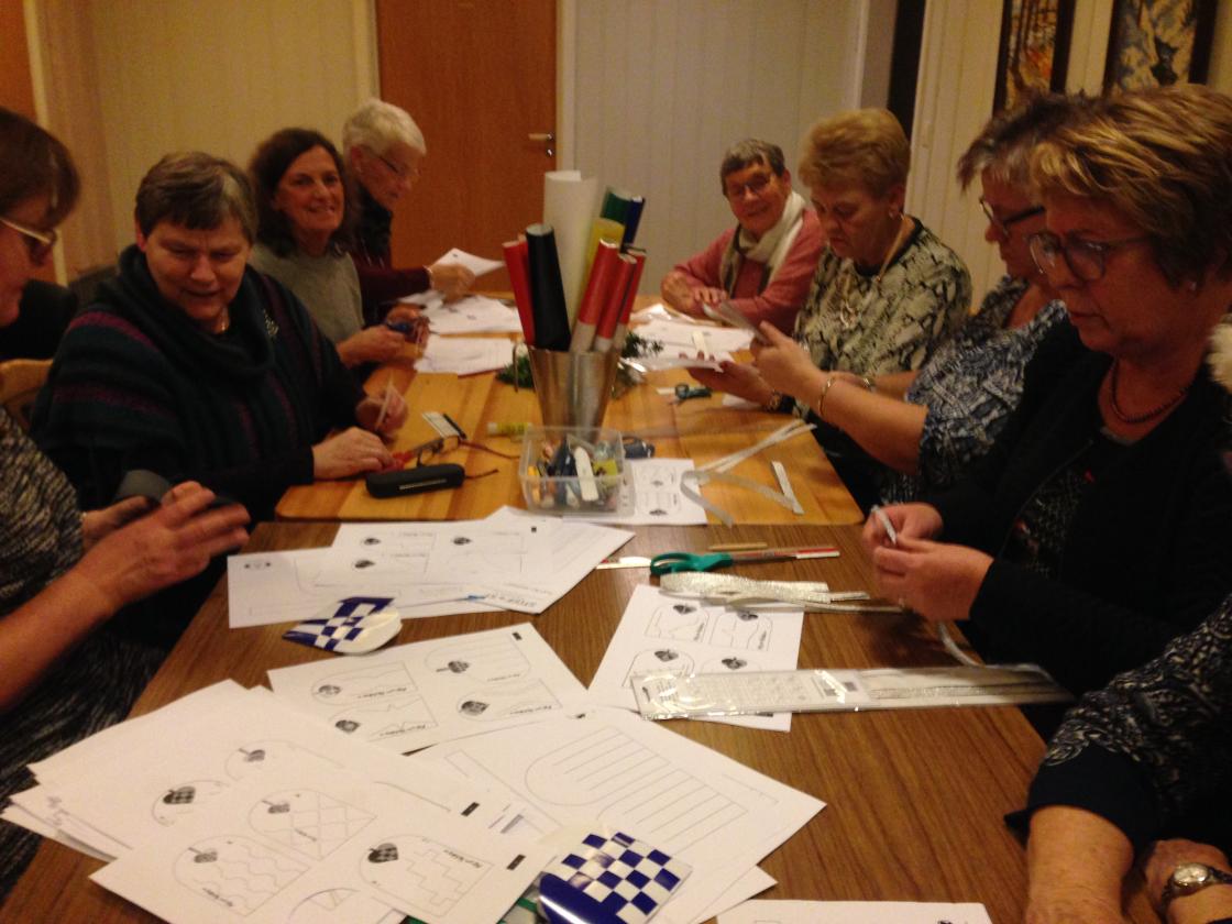 På desembermøtet i Ytre Hobøl denne gangen fant vi frem glanspapir, blyant og saks og flettet kurver