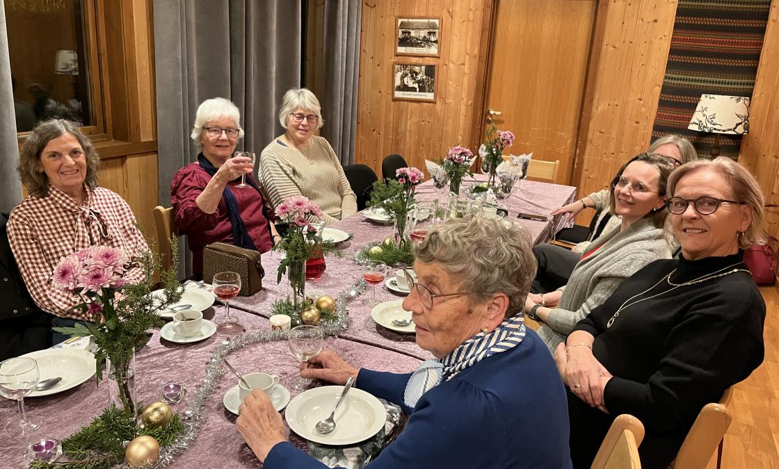 Andre torsdagen i desember var det duket for årets julemøte i Ytre Hobøl Bygdekvinnelag. Solveig og Eva hadde dekket et nydelig langbord, med koselig julepynt, blomster og lys.