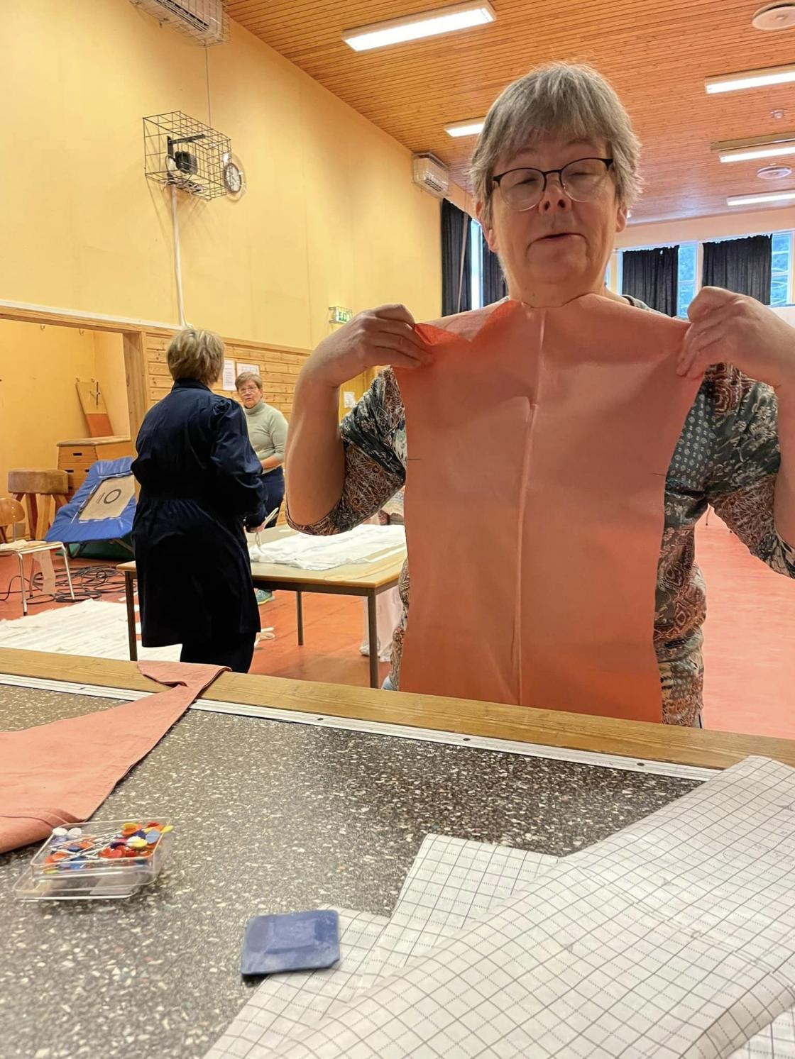 Da kurset ble annonsert, tok det ikke lang tid før kursansvarlig Anne Eva Bjerke kunne melde om fullsatt kurs. Totalt 13 deltakere, både egne medlemmer og ikke medlemmer møtte opp på Ringvoll skole fredag ettermiddag. De skulle ha med ferdig trædd symaskin og forberedt seg på å lage mønster enten til kjole/overdel eller bukse.