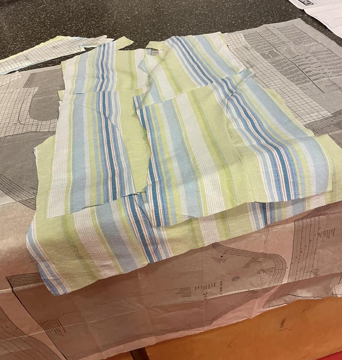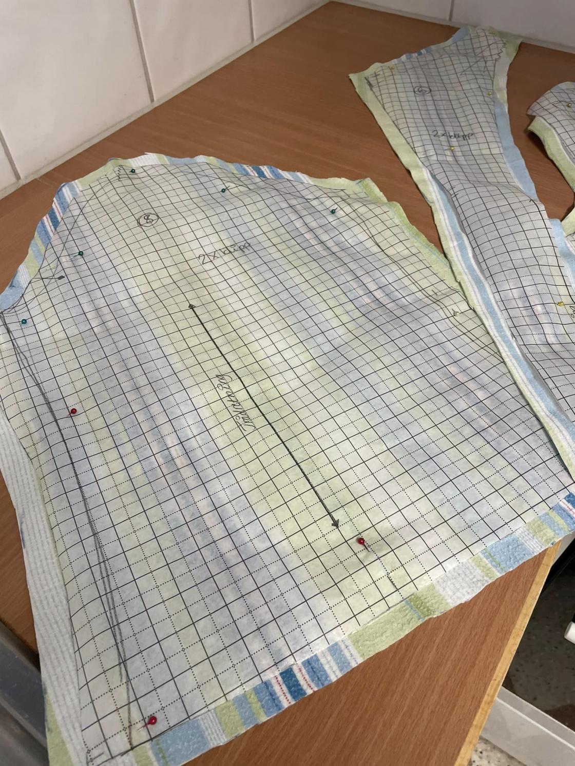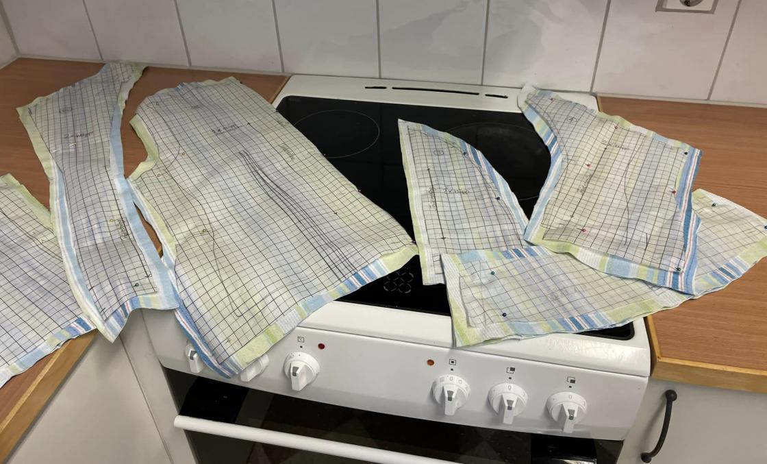 Og til slutt hadde de et mønster som passet til seg selv og de hadde sydd et prøveplagg av gammelt stoff de hadde med seg.