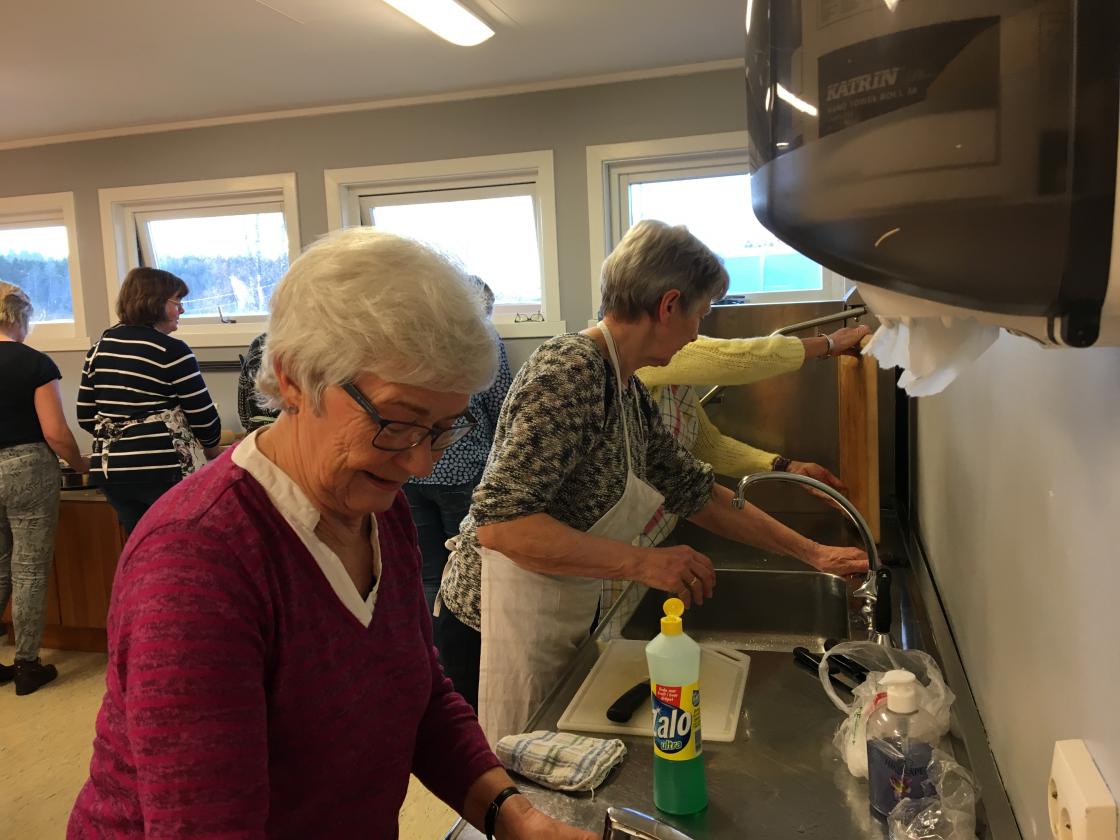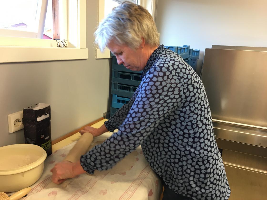 Anne Marthe Bye fra Duga bygg var kursleder, Anne Iversen og Karin Gjøen hadde forberedt og lagt til rette for denne kurskvelden. Det skulle lages 4 retter og deltakerne ble delt i 4 grupper som laget hver sin rett. Fossnes har et romslig kjøkken, så det var ikke noe problem at 21 deltakere jobbet i vei med kjevling, skrelling, kutting og koking. Det ble laget flatbrød med bygg, saftsuppe med bygg, suppe av svineknoke med bygg og eplekake med bygg.
