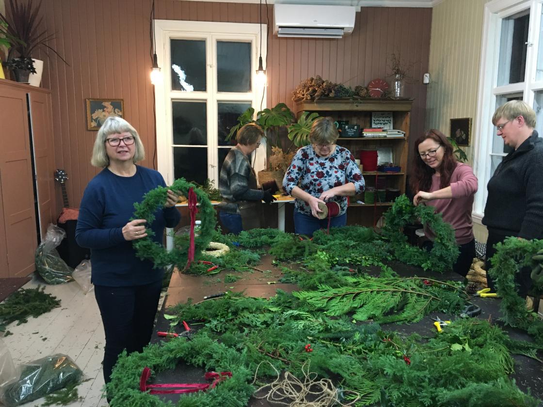Lærte å binde julekranser