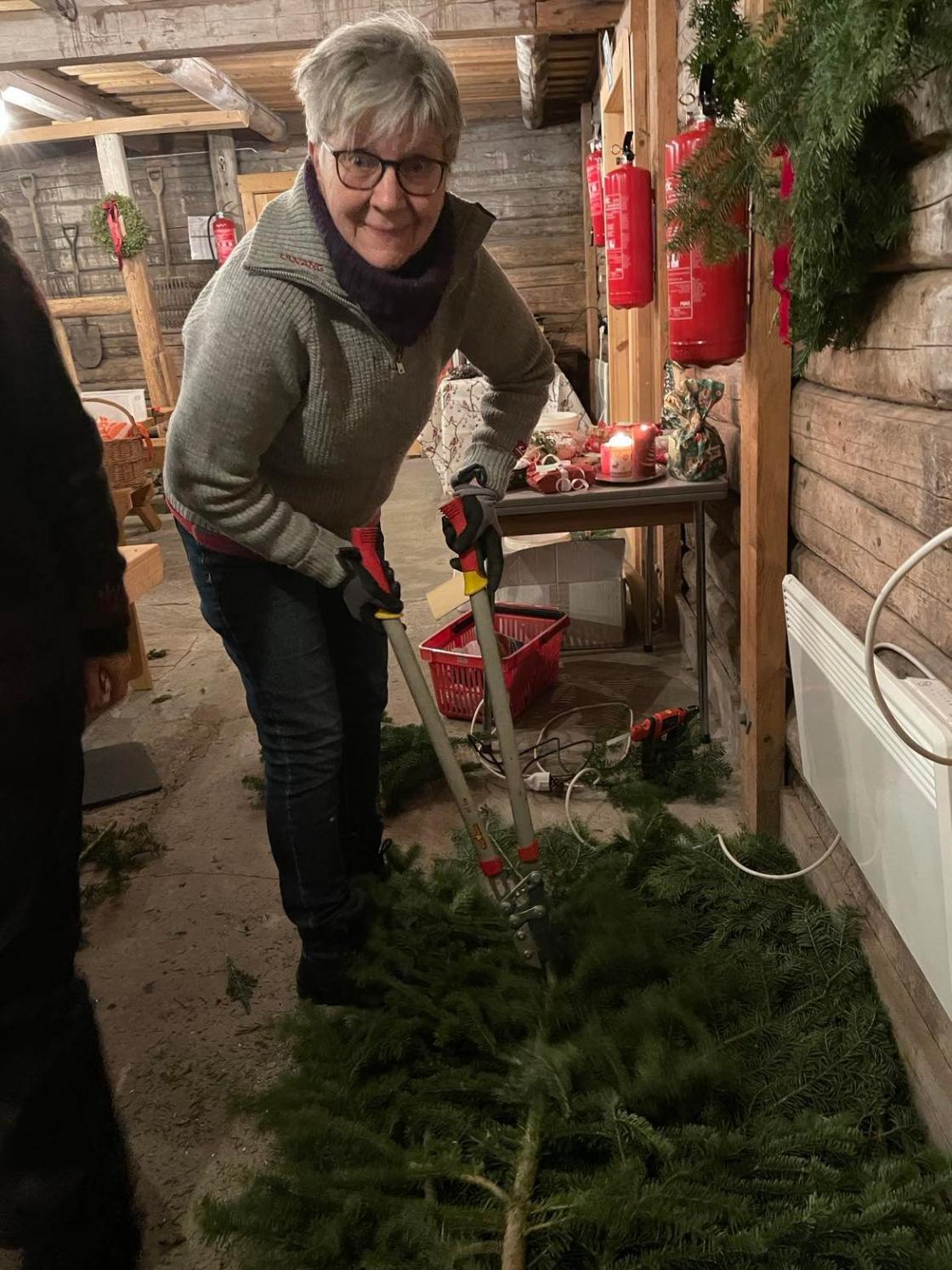 Vi har solgt juletrær ved butikken en lørdag før jul to ganger før, og det blir godt mottatt av bygdefolket, for da slipper de å dra ut av bygda for å få seg juletre. Og så er det veldig hyggelig for oss.