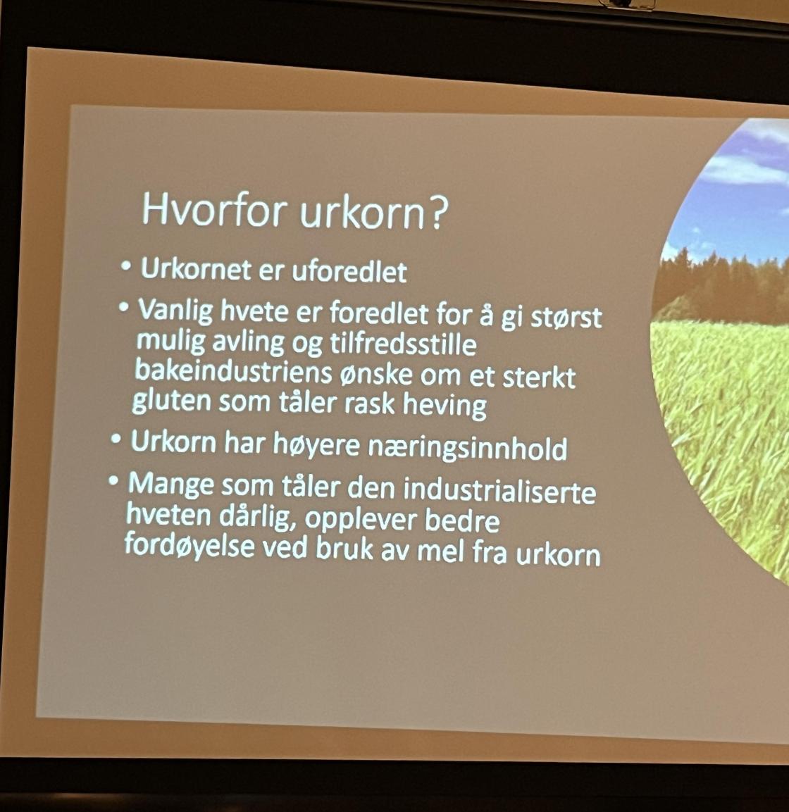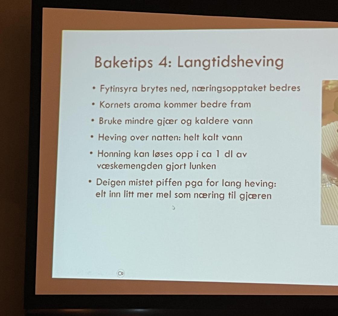Vi fikk lære om hva urkorn er, hvorfor det kan være lurt å velge det, og de forskjellige sortene. Vi lærte om spelt, dala landhvete, emmer, svedjerug, elting, langtidsheving, fett i bakverk, temperatur og mye mer. Det ble nesten et helt bakekurs den kvelden.