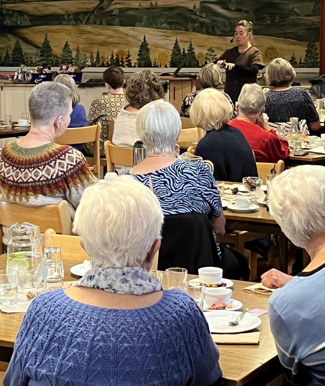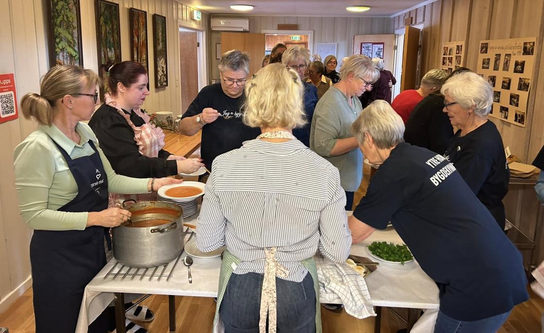 Deltakerne koste seg stort, når alle har samme interesse, blir det jo hyggelig. Det ble servert deilig tomatsuppe med kokt egg. Og siden det var jubileum , var det bløtkaker til kaffen.