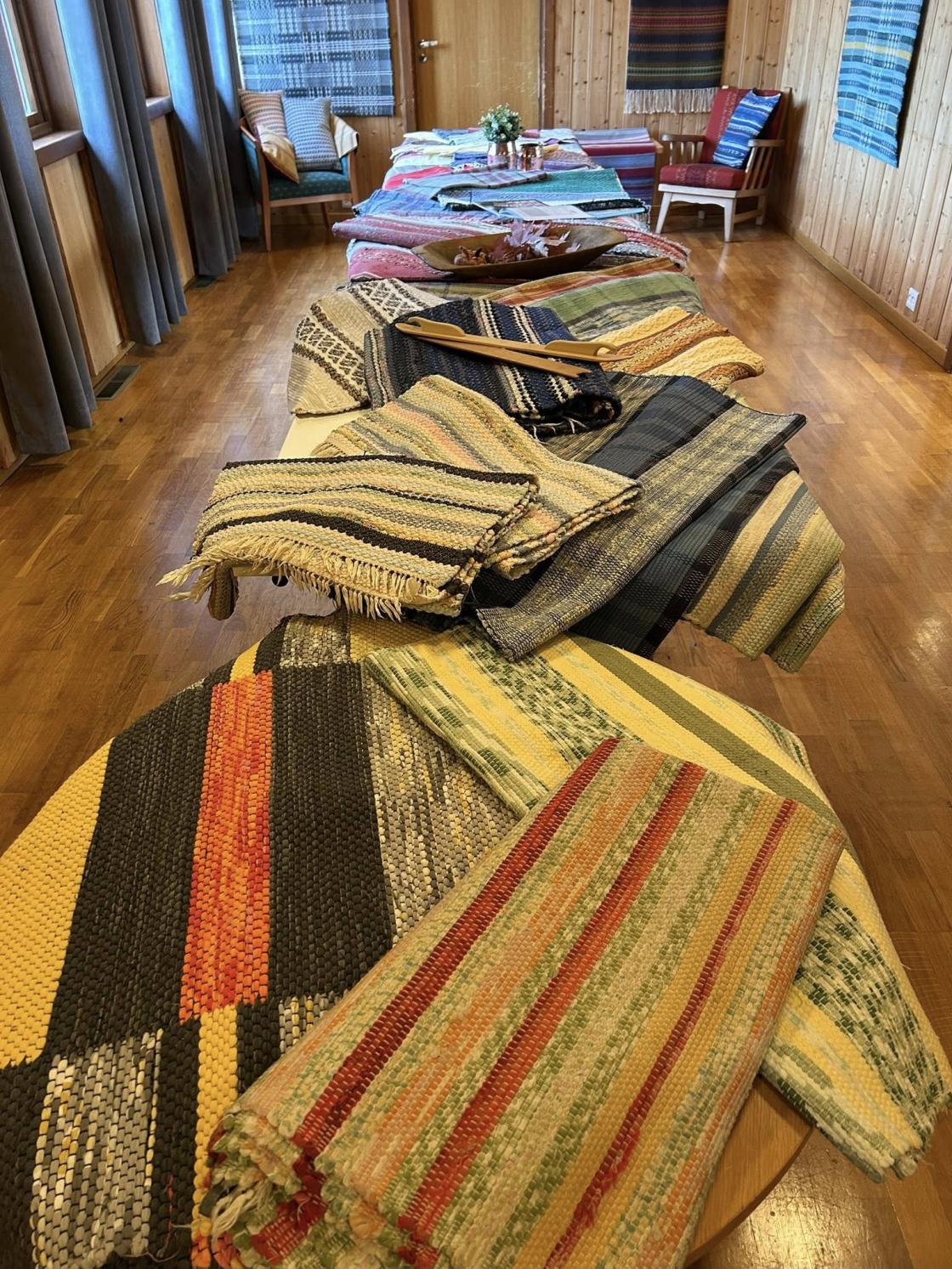 På vevstua vår har vi etter hvert blitt mer og mer opptatt av brukstekstiler, vi vever ikke så mye store duker lenger. Da passet det godt at foredragsholderen var Guro Buttingsrud. Foredraget het «Å veve det er å elska, tekstiler til glede, pryd og nytte» Hun har egen vevstue og vever selvkomponerte tekstiler. I tillegg underviser hun i veving på Hjerleid Handverksskole på Dovre. Det var veldig artig å høre henne fortelle om forskjellige teknikker og det forskjellige som hun lager. Gurobuttingsrud.no