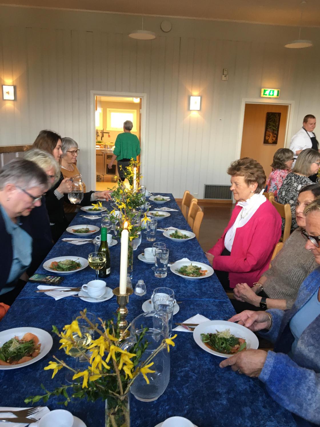 Underveis under middagen fikk vi også markert at et av medlemmene fylte 80 år to dager seinere, og det var en hyggelig overraskelse for henne.