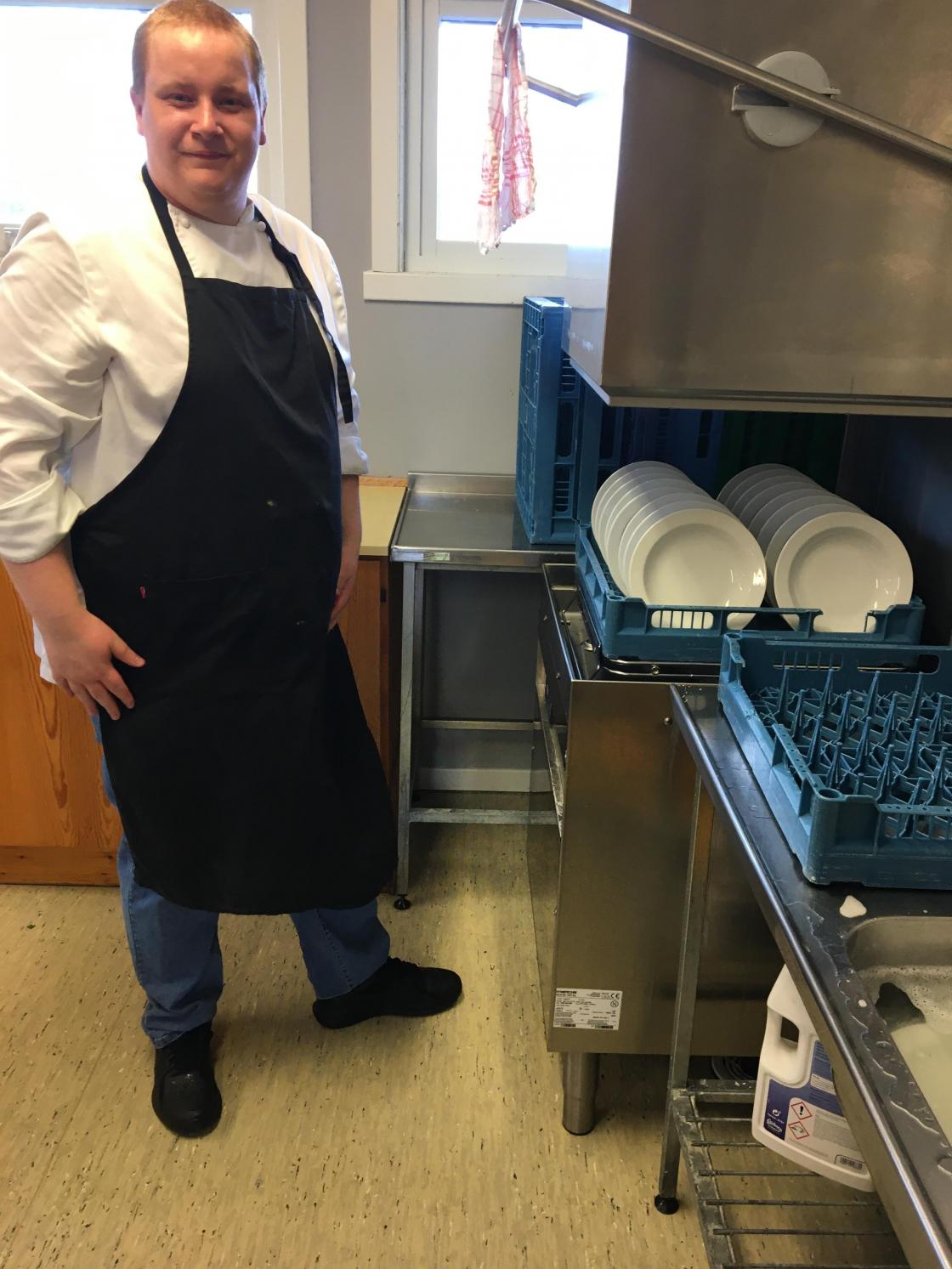 Da maten var klar var det to servitører fra Kafe Glede som serverte, ryddet og vasket opp.