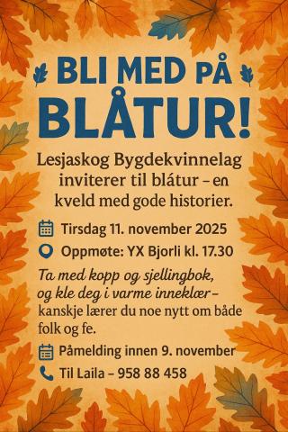 Bli med på blåtur, husk kopp og sjellingbok, og kle deg i varme inneklær....