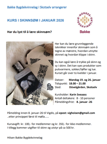 Bakke Bygdekvinnelag arrangerer kurs i skinnsøm