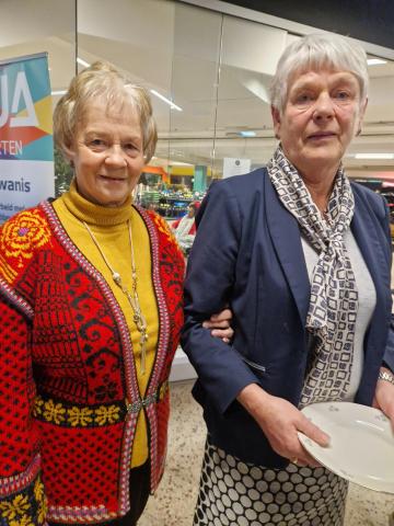 Ellen Margrethe Øveren fikk overrakt «æreskjevle» som takk for langt medlemskap og utallige tillitsverv i Sognedalen bygdekvinnelag, Ringerike, på lagets juleavslutning 2025.