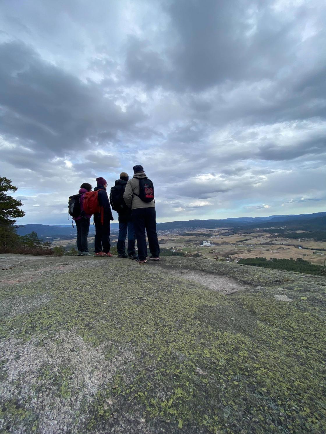 Det møtte opp syv kvinner og hunden Tavi til en flott tur til Ding-Dang Kyrkja. Alle kom med godt humør og ved kyrkja blei det kaffi, kakao og noe godt ved siden av.