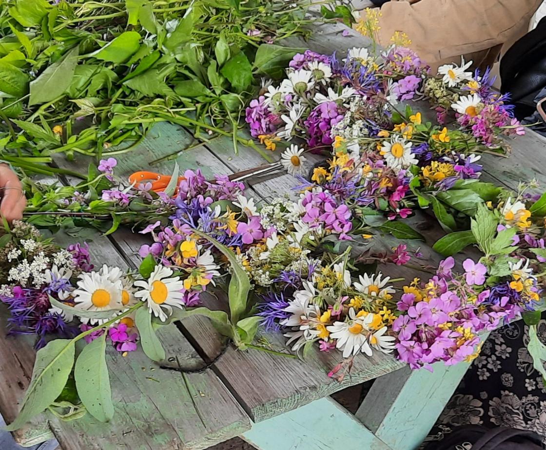 Vi fulgte opp suksessen fra i fjor og inviterte til binding av blomsterkranser.