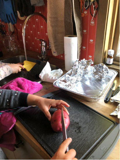 Hver tok en passende potet fra sin ”beholdning ” som ble vasket og ordnet for baking, pakka inn og merka med hver deltaker sitt navn