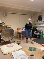 Gro Anette Isene fortalte om og spilte på slaginstrumentet Gong. Det ble brukt blant annet til meditasjon .