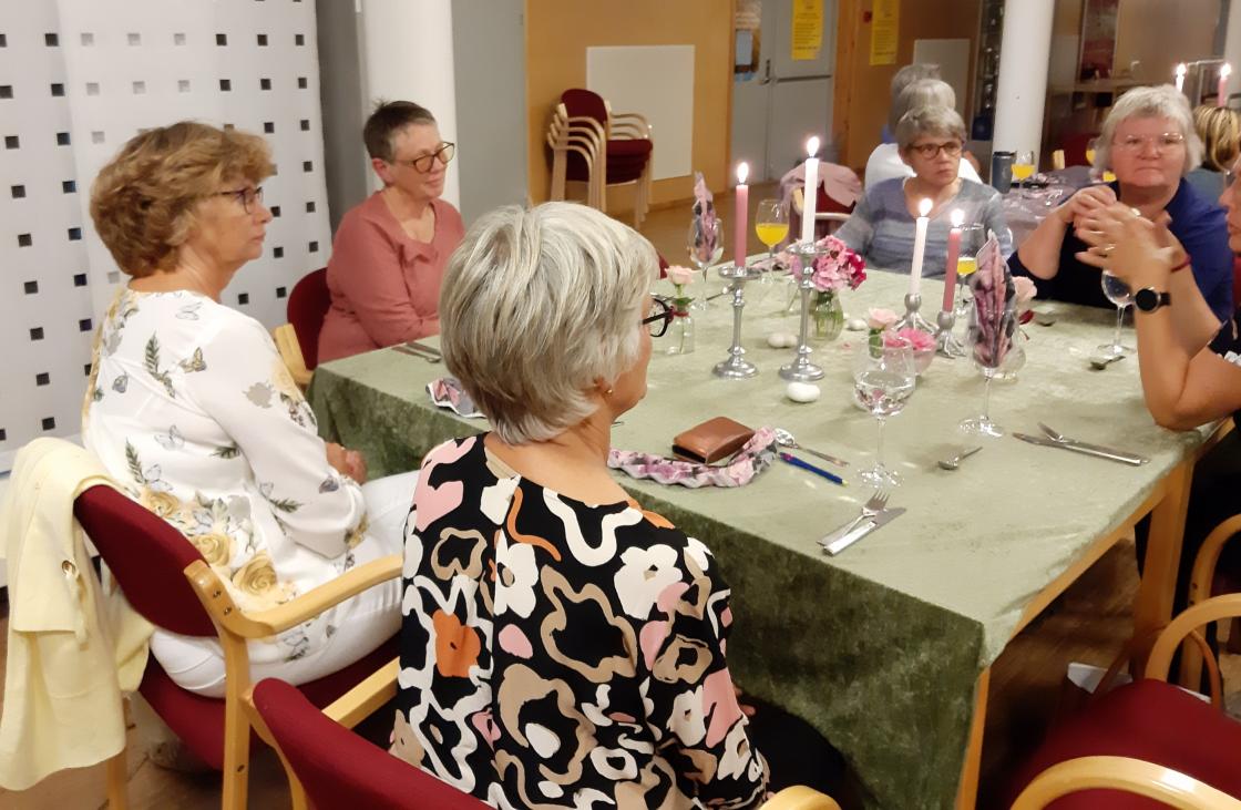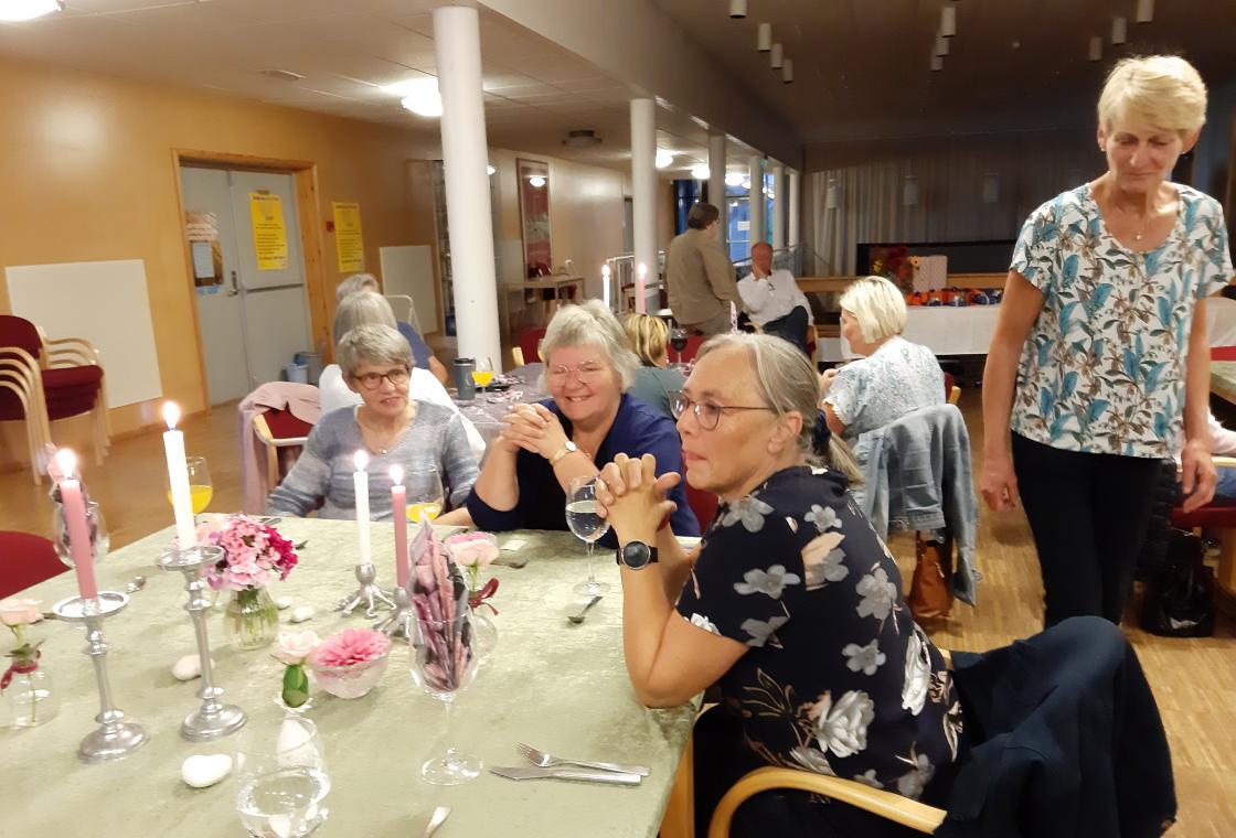 Bygdekvinnene fra Tyristrand hadde pyntet fire nydelige 8-mannsbord. Vi var i alt 29 bygdekvinner fra Ringerike og Hole som møtte fram. Ved ankomst fikk vi servert en frisk (kjørbar) fordrink.