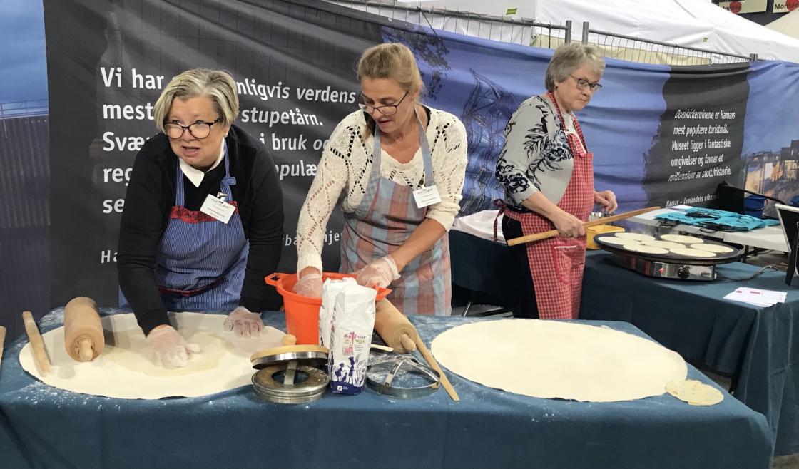 På lørdag stilte Brøttum Bygdekvinnelag med takke og bakte lomper til stor glede for mange lærevillige tilskuere. Oppkrifter ble delt og jammen smakte de nystekte lompene himmelsk!