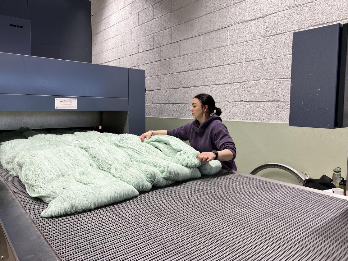 Turen gikk så videre til Rauma Ullvarefabrikk, her fikk vi historien om fabrikken, omvisning og så fikk vi handlet garn etter smak og behag.