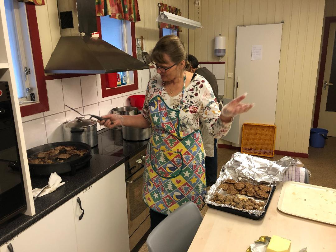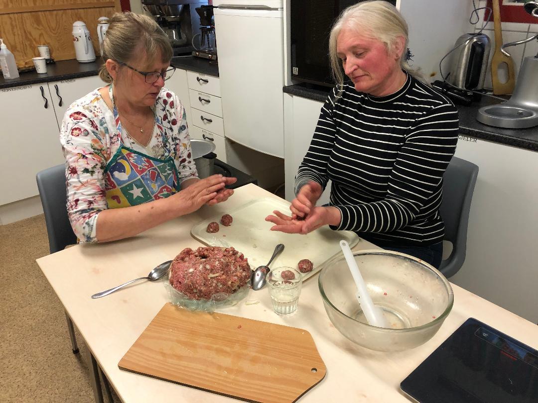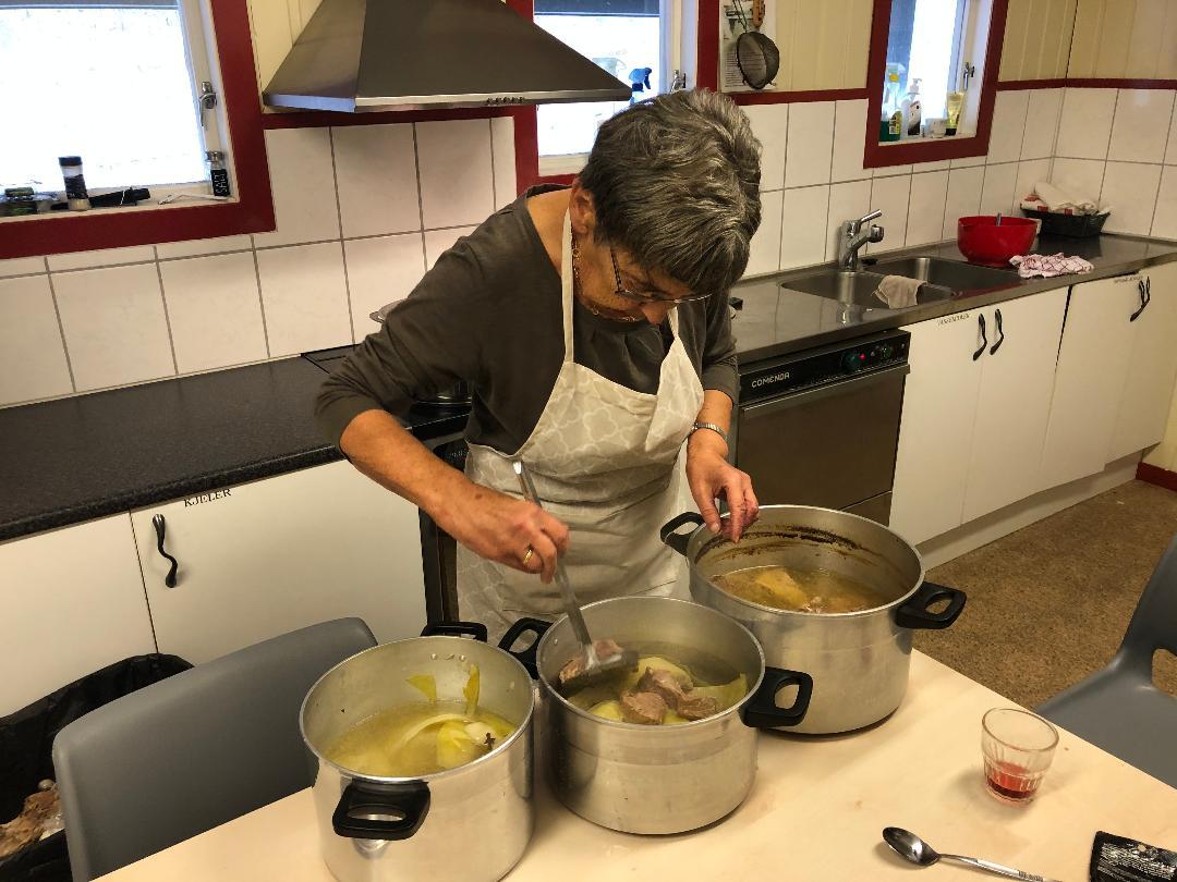 Vi lagde lammefrikassé, lammeburger, fårikål, lårsteik, salta kjøtt med potetball og greske kjøttboller. I tillegg hadde vi tzatziki og rømmedip, og hadde kålrabi, gulrøtter og poteter til.