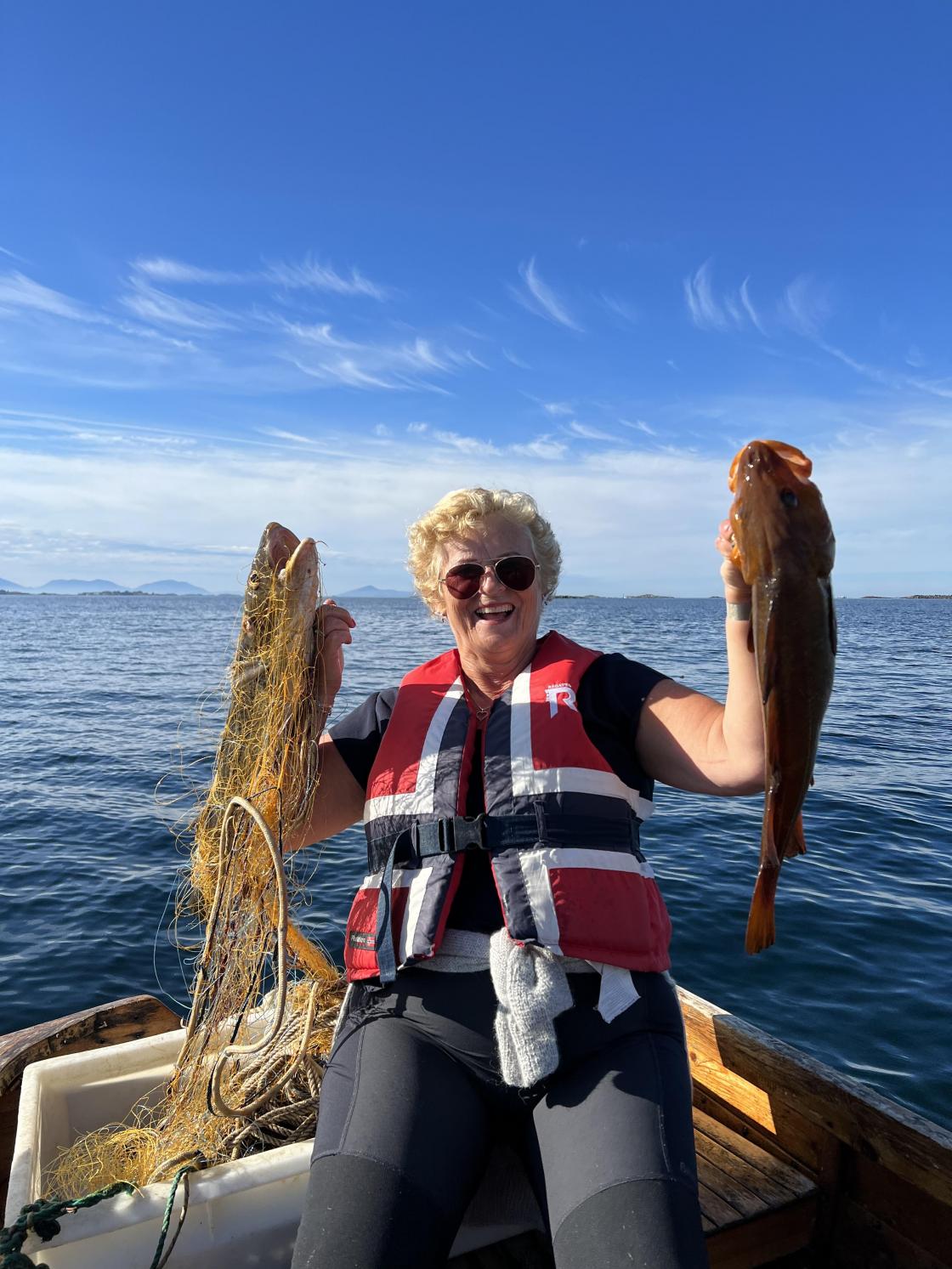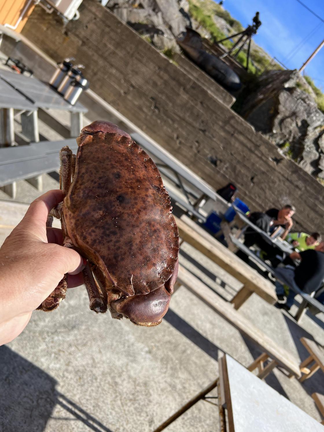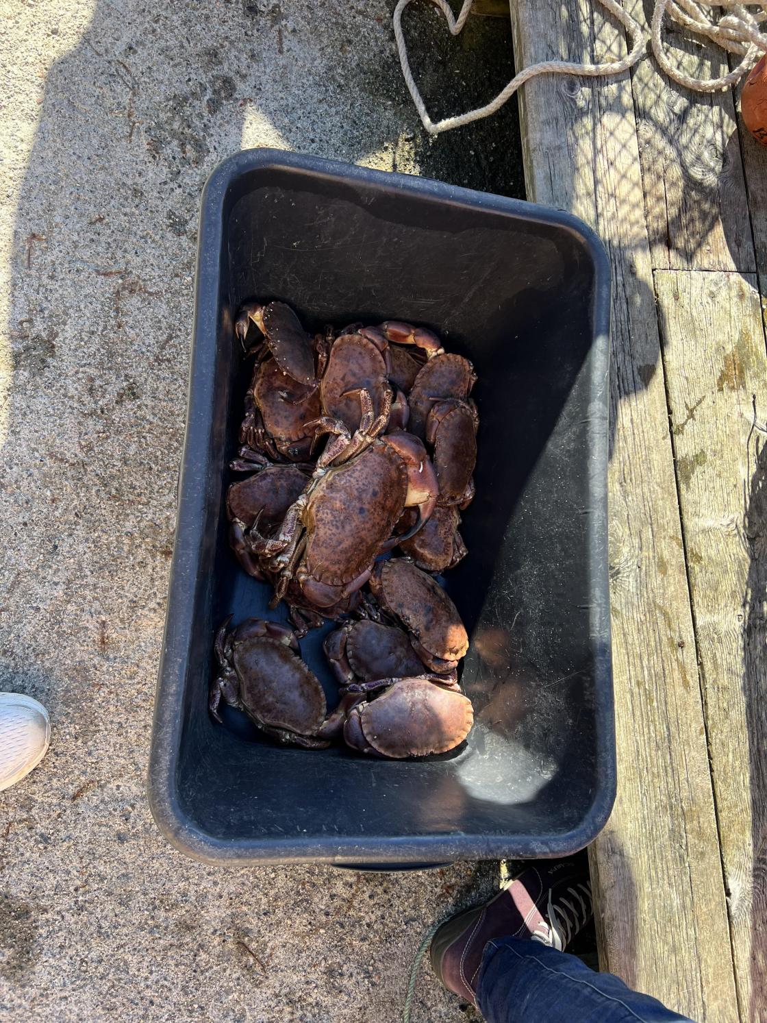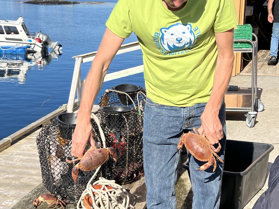 Når vi kom ut ventet det robåter som vi måtte ut i for å dra krabbeteiner og fiskegarn.
