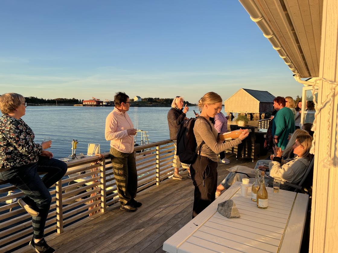 Dagen ble avsluttet ved ei privat brygge med fantastisk utsikt over solnedgangen på Gjenstøa.